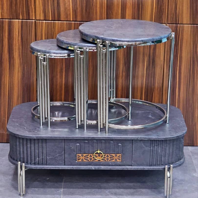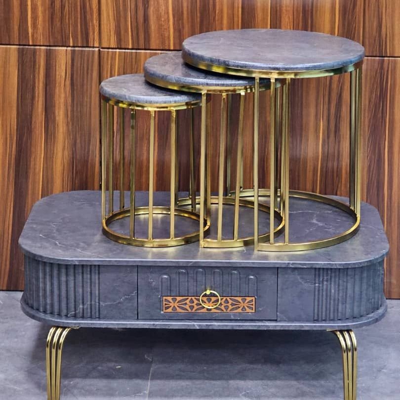 میزعسلی فلزی چوبی میز با سه عسلی هزینه ارسال مبلمونسرا مدل 218651