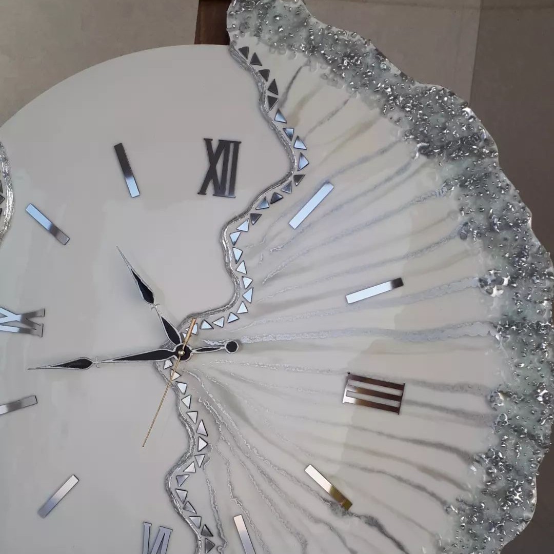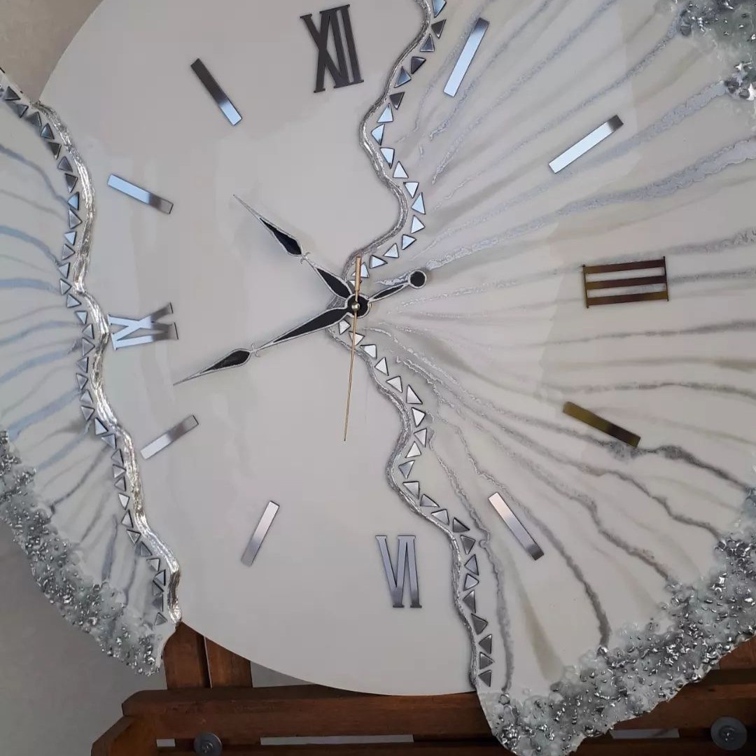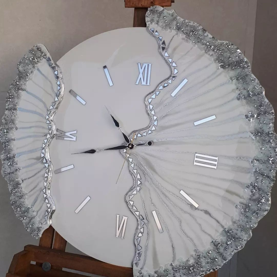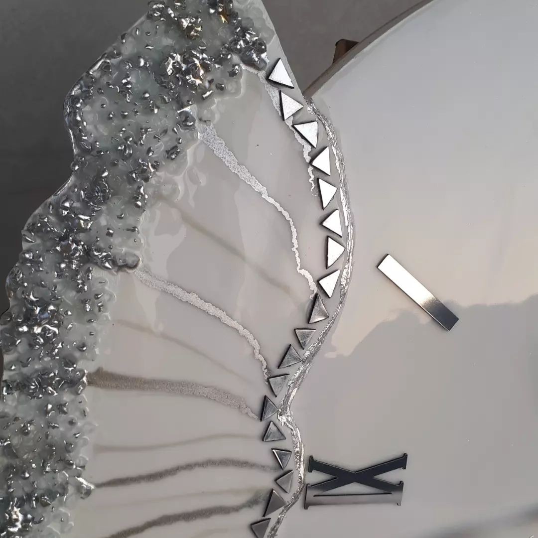 ساعت دیواری رزینی دفرمه ساعت فانتزی نقره ای مبلمونسرا مدل 238280