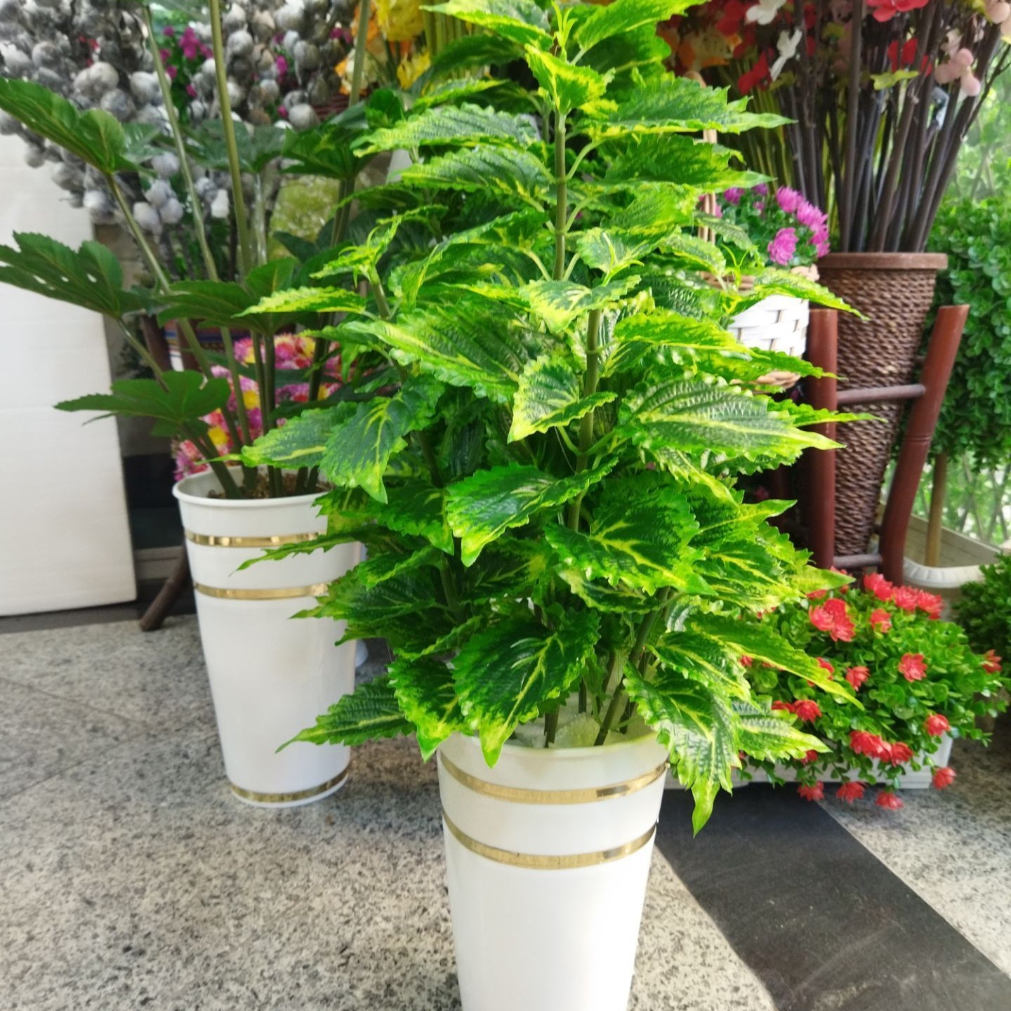 گل مصنوعی حسن یوسف مشابه طبیعی قدکاربه همراه گلدان 70سانت دارای خزطبیعی مبلمونسرا مدل 258192
