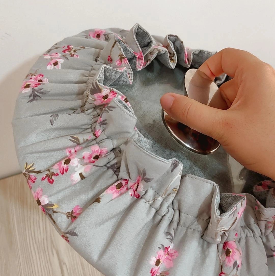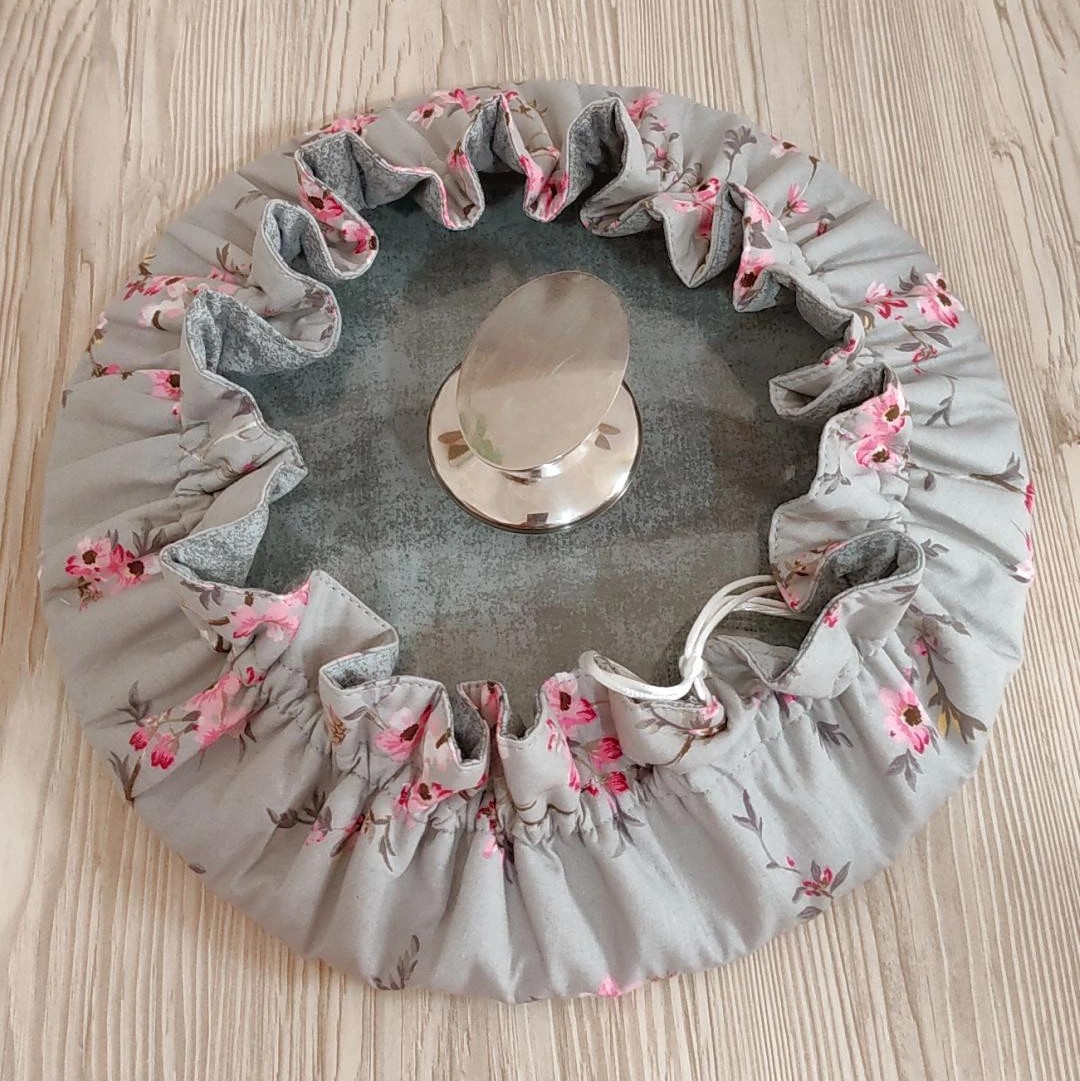 دمکنی فری سایز مناسب سه سایز درب قابلمه هست سایز 25/30/35 به راحتی با بند قابل تنظیمه داخلش یک لایه پشم شیشه فیلتری صدگرم استفاده شده ،دولایه پارچه کتان نخ ترک ،دوخت بسیارتمیز اصلا قابل قیاس باجنسای پلاستیک بازاری نیستن قطر پنجاه مناسب سه سایز بالایی هست