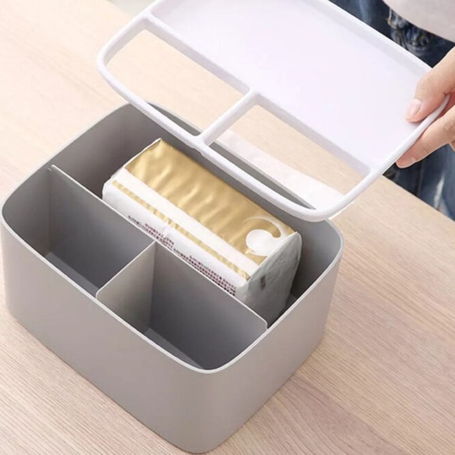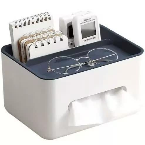 استند لوازم آرایش جنس پلاستیک فشرده مقاوم ضدآب و رطوبت نظم دهنده دارای 4 محفظه و نگهدارندی دستمال کاغذی و وسایل مختلف مناسب استفاده بر روی میزآرایش _ میزکار_میز تحریر_سرویس بهداشتی و....... رنگ طوسی آدرس سایت فروشگاه👈سه دکمه شاپ