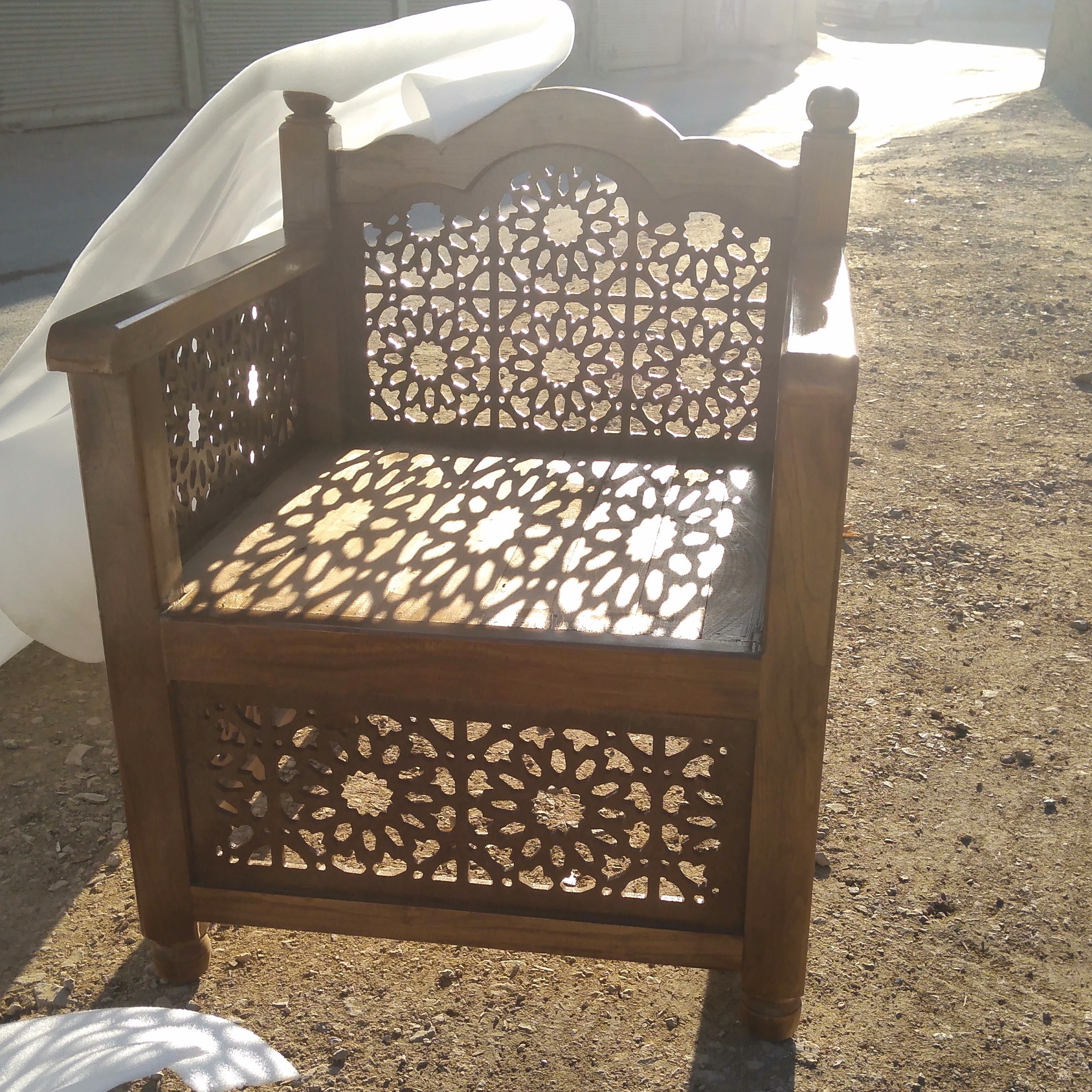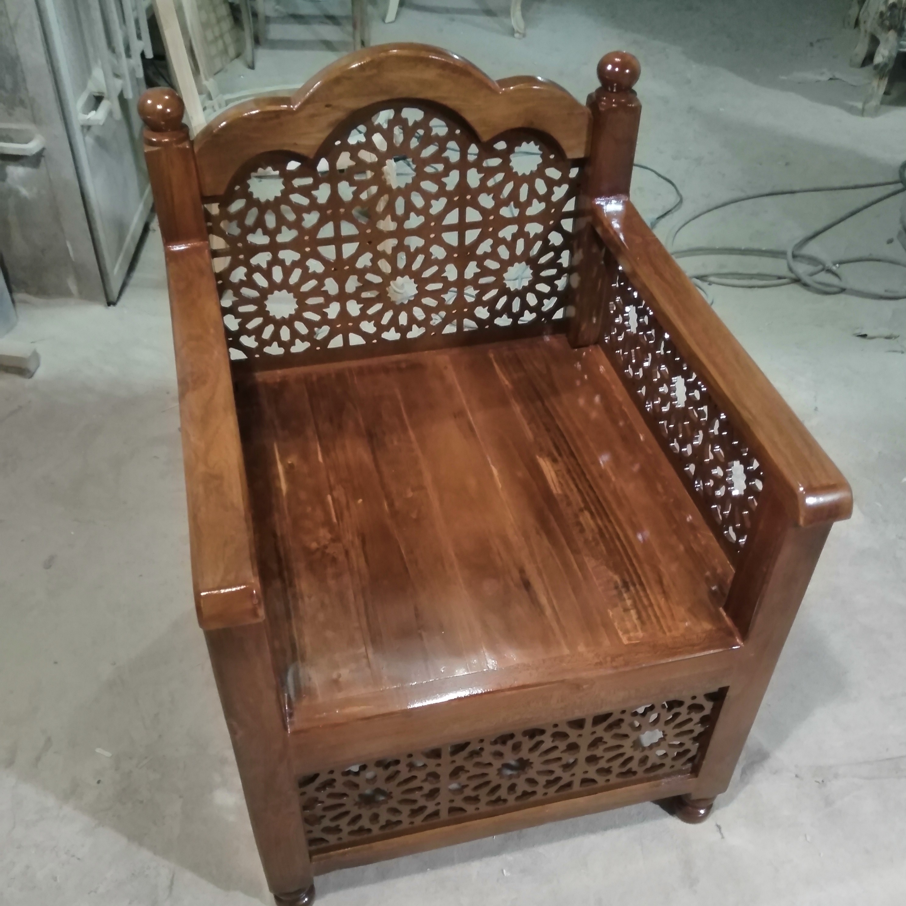 باسلام صندلی سنتی بسیارزیبا وپرکاروفـاخر جنس چوب تمام چنارضمانت5ساله ساخت دست نجارخبره ابعادپشت تاپشت کار65*65 فاصله نشیمن تازمین45 مناسب برای جلسات هفتگی واماکن مذهبی ارسال به تمام نقاط ایران