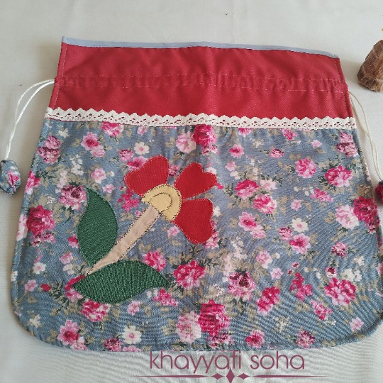 سلام 🌻 اینم از اولین محصول تکه دوزی شده مان 😀 داخل این کیسه سبزی با یک لایه پلاستیک و یک لایه آستر پارچه ای پوشانده شده . تنها با کشیدن بندها میتونید در کیسه را ببندید . با وجود این کیسه میتونید سبزی ها رو به مدت بیشتری توی یخچال نگه دارید در عین اینکه توی این مدت تر و تازه میمونند و پژمرده نمیشند . 😉