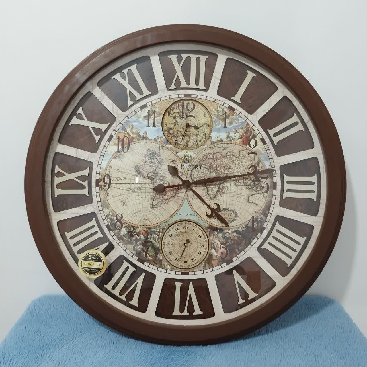 این ساعت ساخت شرکت شوبرت میباشد که تماماً ساخته شده از چوب و همچنین دارای 3 موتور روانگرد و بدون صدا همراه با مصرف کم باتری میباشد که یک موتور نشان دهنده دقیقه و ساعت و دیگری برای نمایش ثانیه میباشد. اختلاف رنگ صفحه و اعداد کلاسیک رومی با عقربه باعث شده ساعت از فاصله دور هم خوانا باشد.. ابعاد قطر صفحه 67 سانتی متر وزن 4 کیلوگرم سایر ویژگیها دارای 3 موتور روانگرد و بدون صدا مصرف کم باتری جنس قاب چوب نحوه نمایش عقربهای منبع انرژی باتری نمایش زمان رومی تکنولوژی ساخت الکترونیکی موتور ساعت شوبرت 3 سال گارانتی دارد