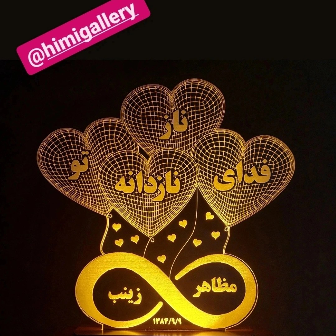 چراغخواب مدرن و لاکچری مورد نظر بصورت قلبهای خام هست که اسم یا متن مورد نظر شما داخل اون بصورت رایگان حک میشه. مدل جفت قلب و تک قلب هم داریم که میتونید اسمتون رو داخلش حک کنید. اداپتور داخلی داره و بصورت مستقیم به برق وصل میشه و شما هیچ وقت مشکل تمام شدن باطری نخواهید داشت. تولید کننده هستیم و تمامی محصولات چوبی و چراغ خوابهای موجود در غرفه ، توسط تولید خودمون ساخته میشه. قابلیت تولید عمده و ارسال به سراسر کشور داریم.
