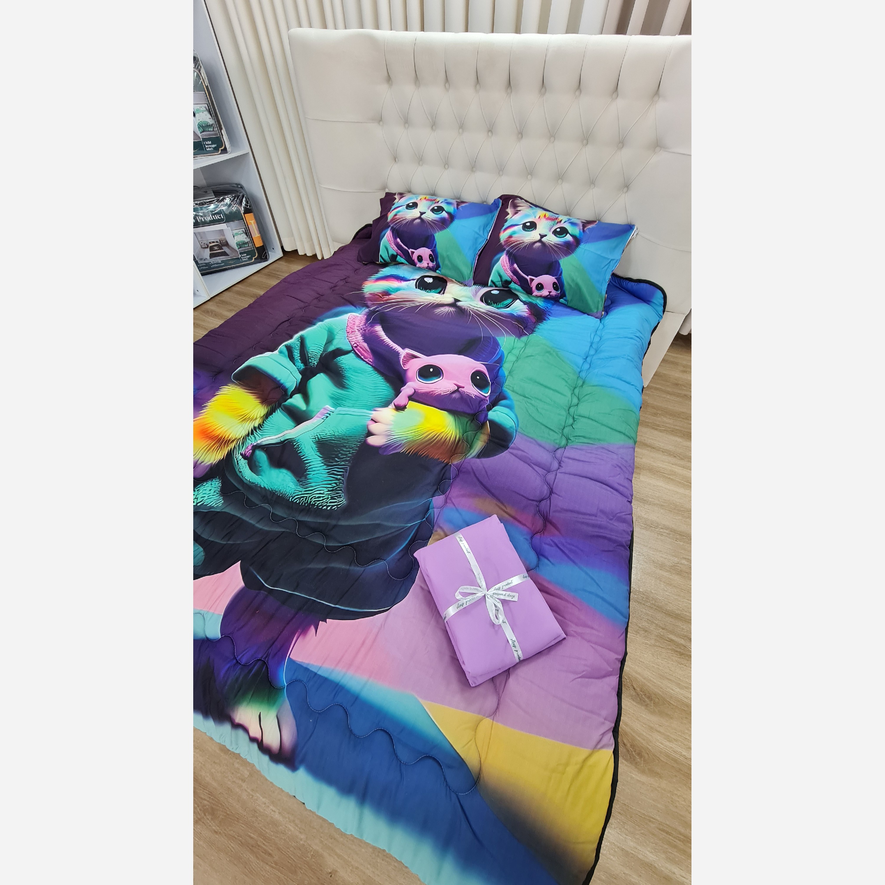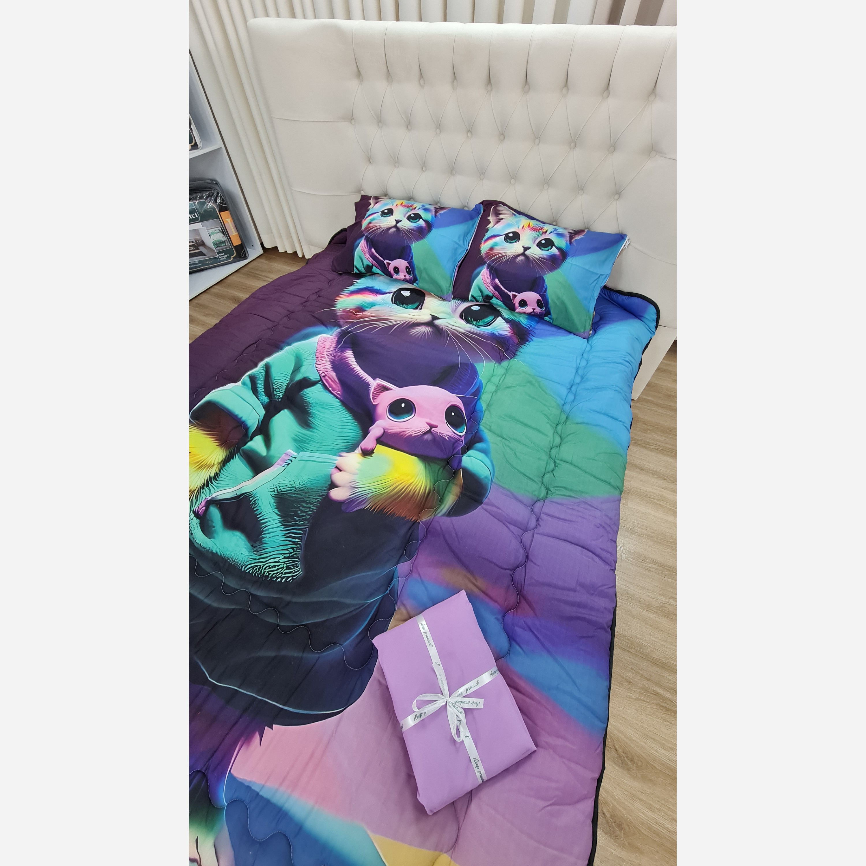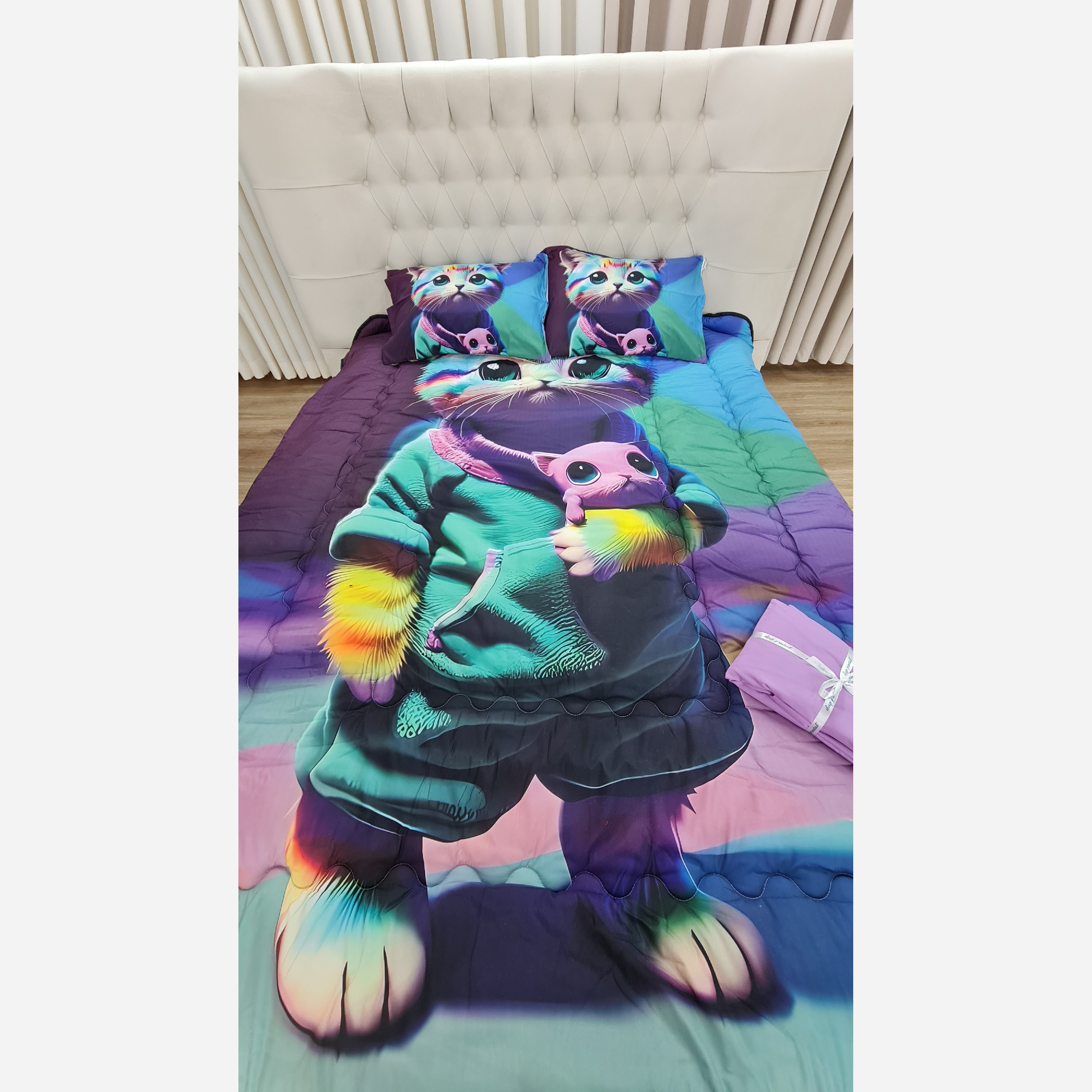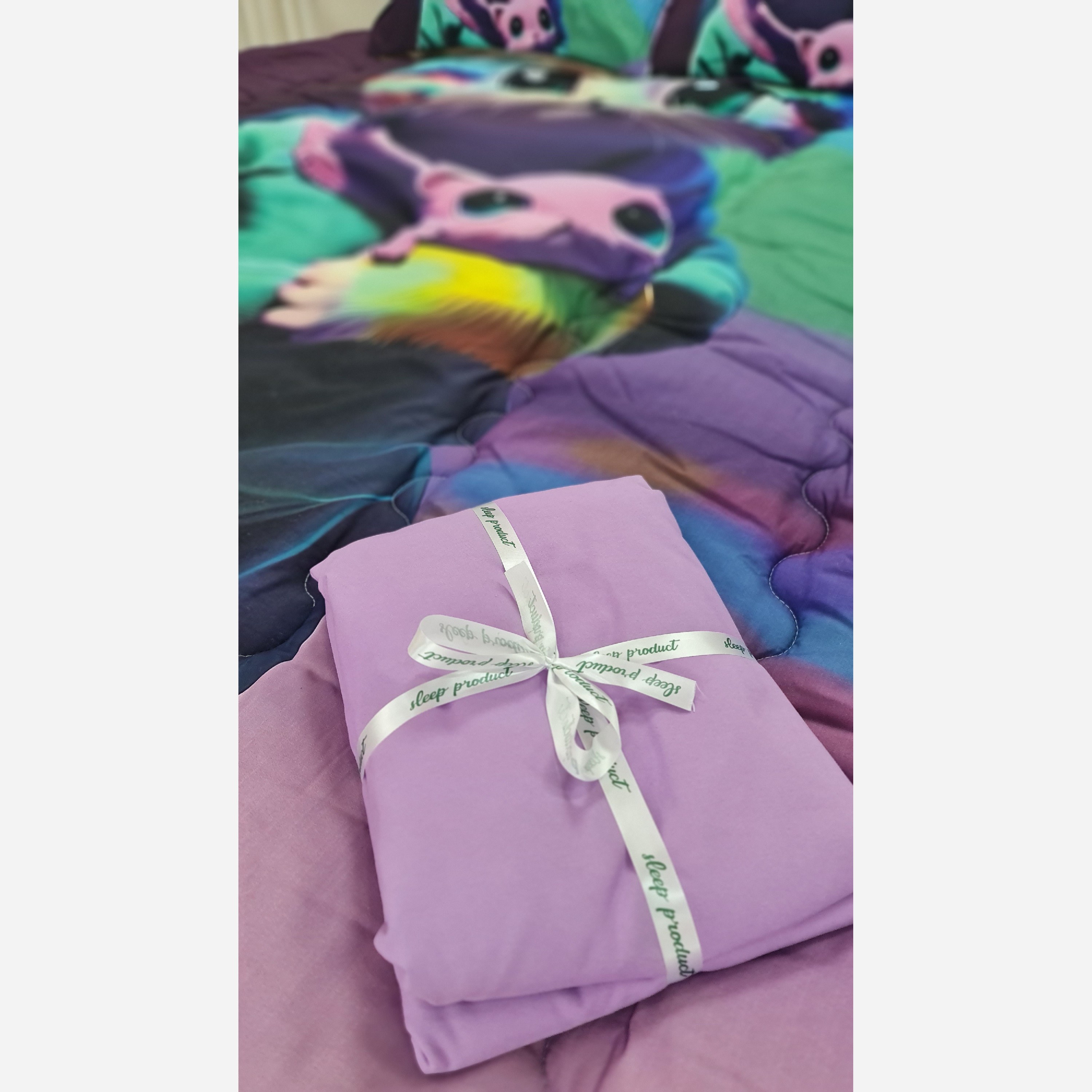 سرویس روتختی دونفره طرح گربه دخترانه پارچه میکرو ترک کد G139 مبلمونسرا مدل 226880