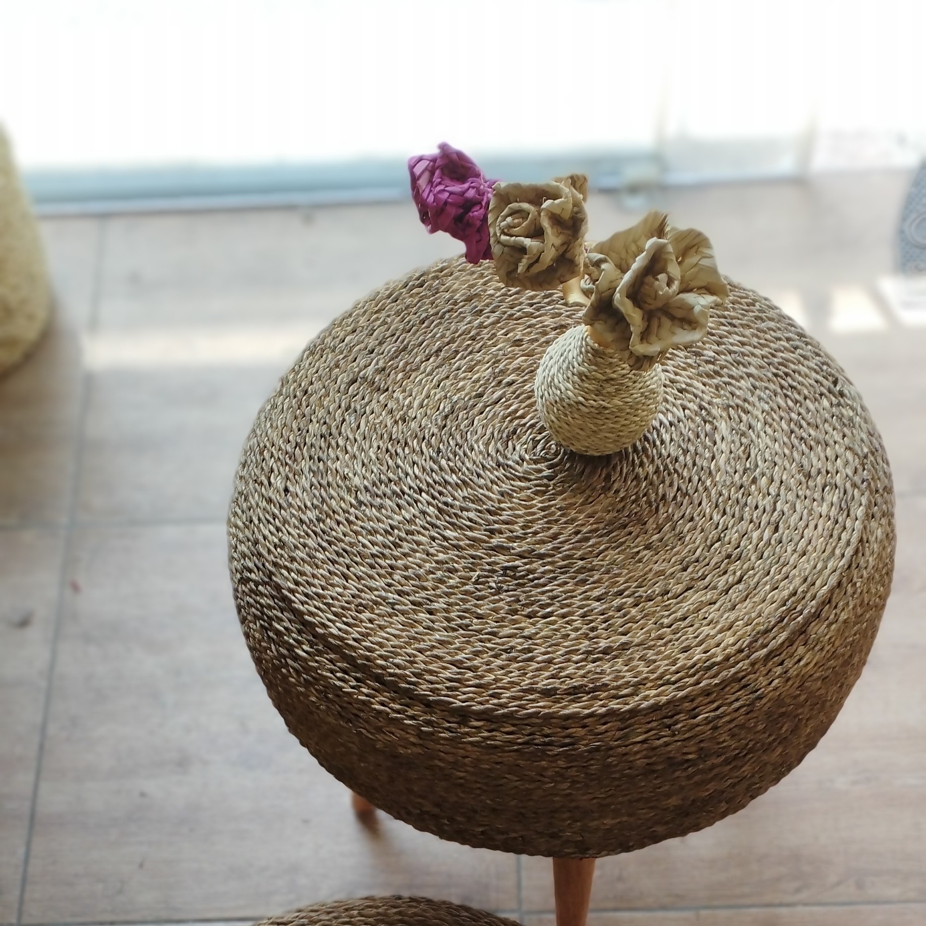 میز حصیری قطر 50 پاف حصیری مبلمونسرا مدل 213725