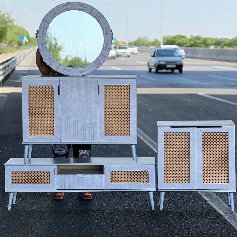 آینه و کنسول مدل حصیری مبلمونسرا مدل 218884
