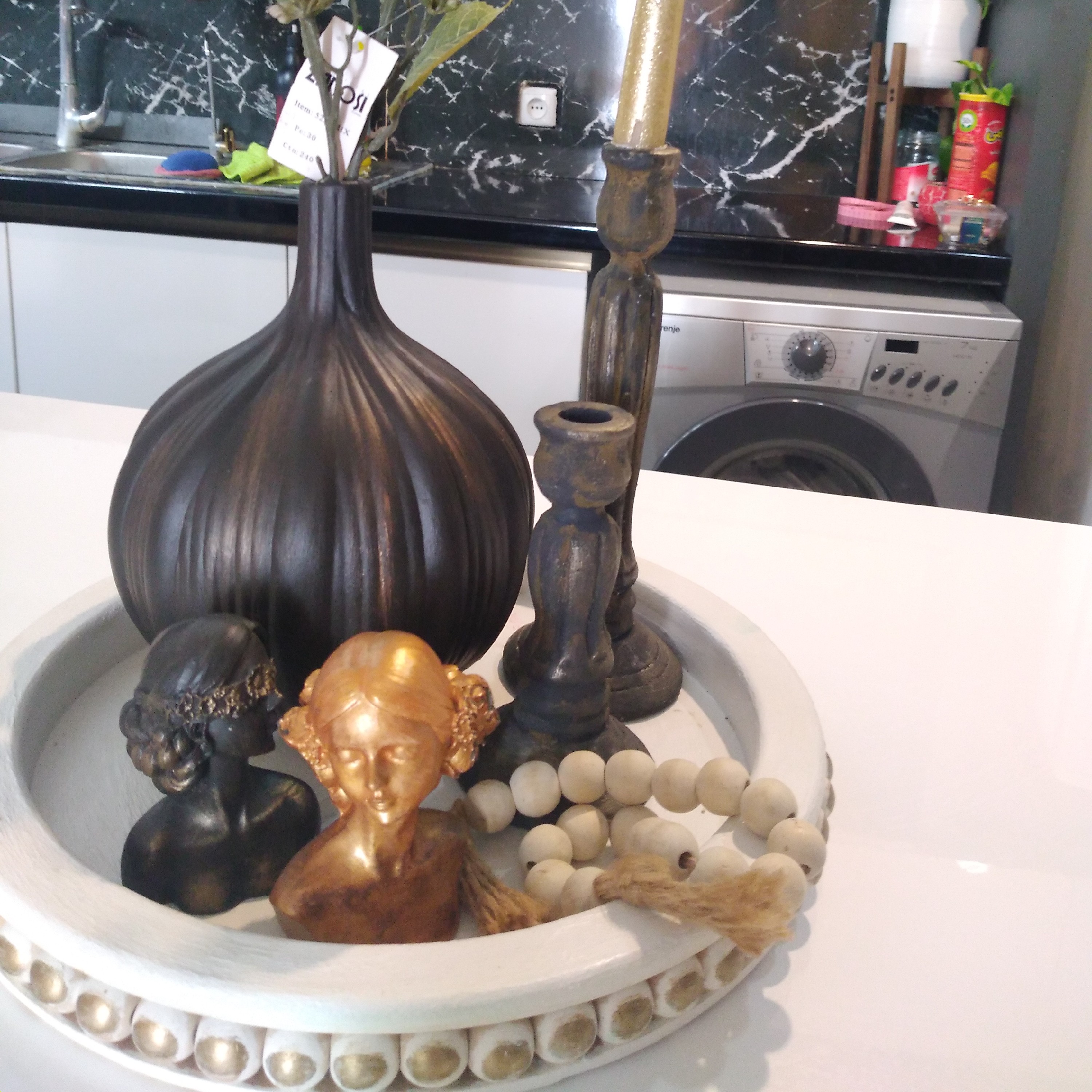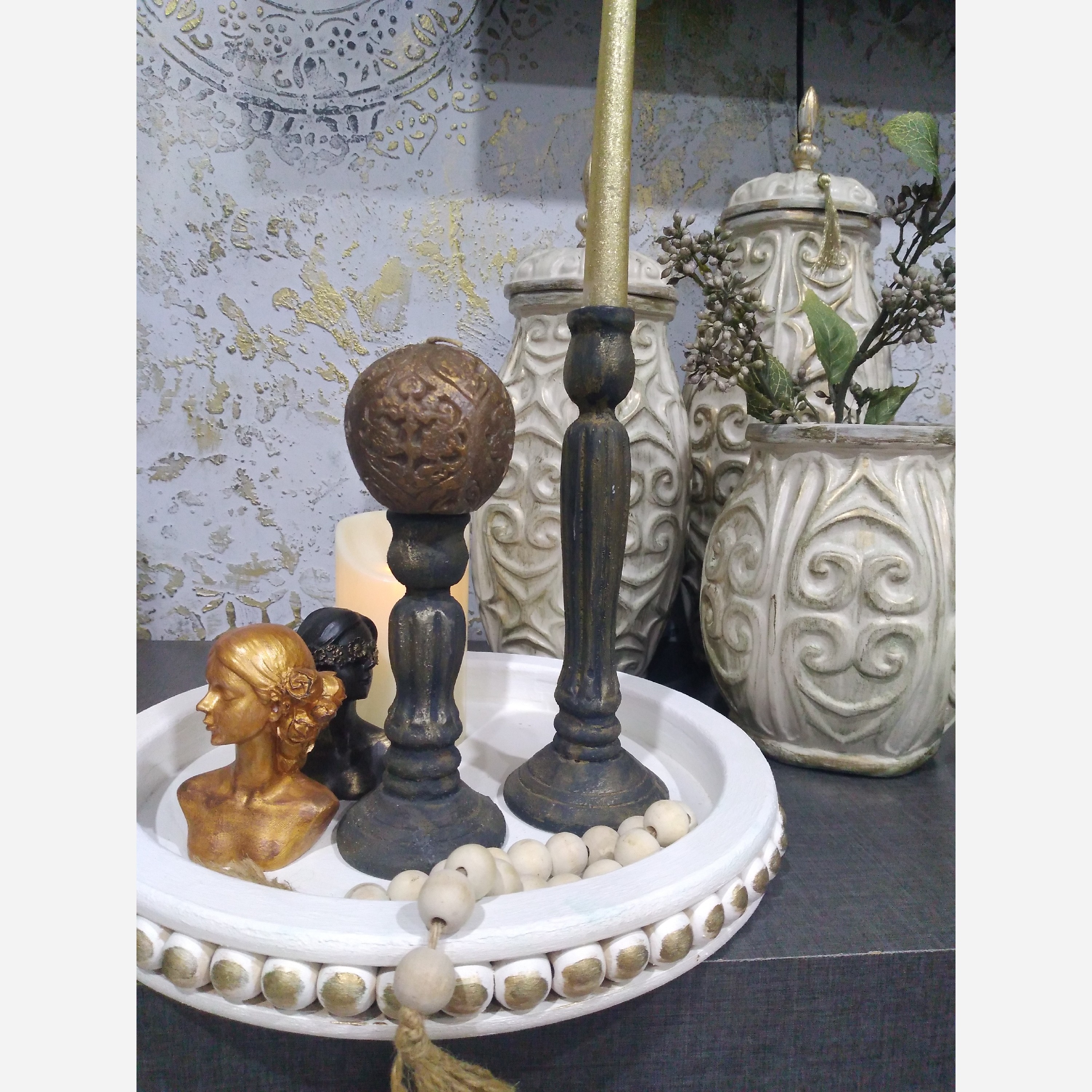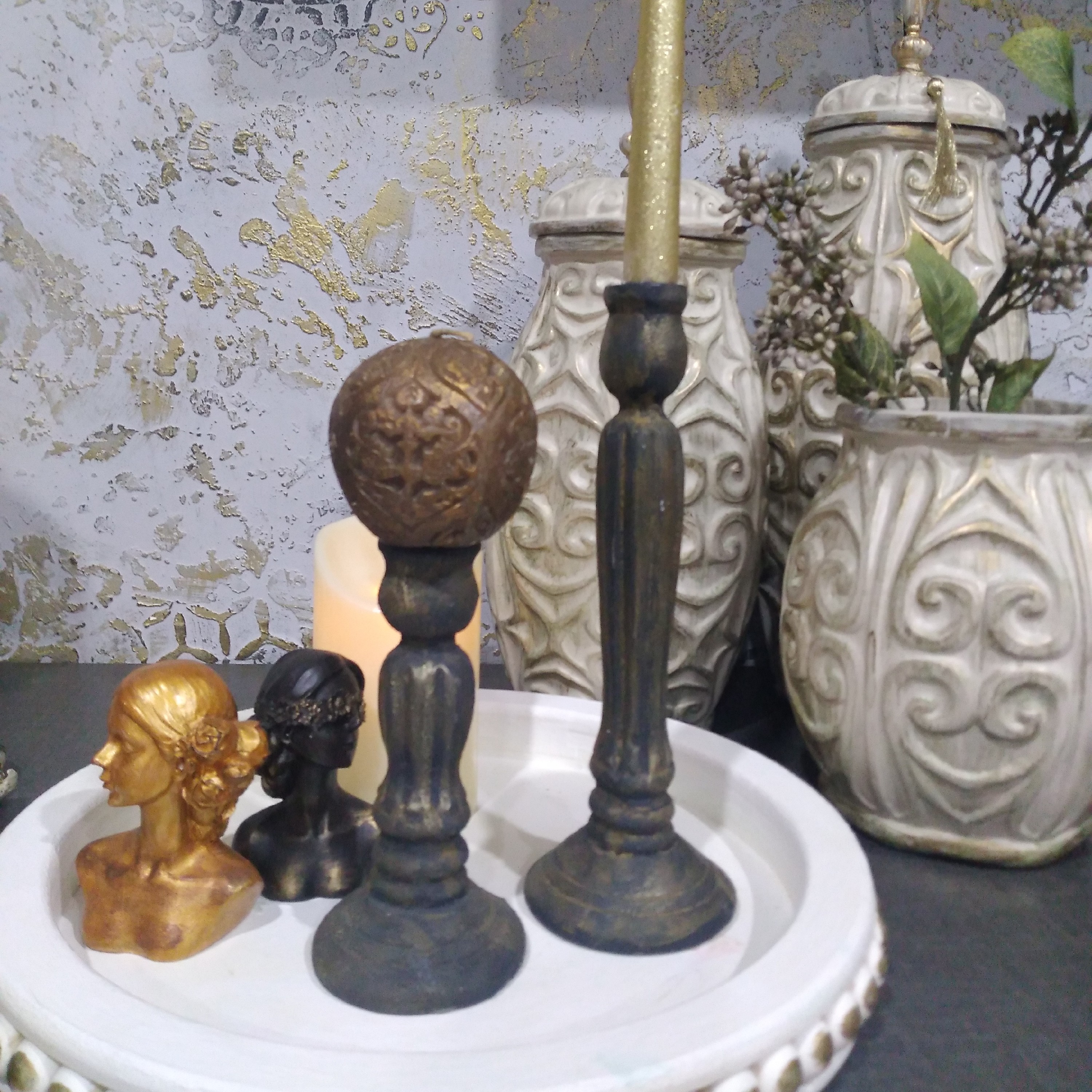 جاشمعی پلی استر طرح چدن ست دوتایی ارتفاع بیست و چهار و پانزده سانت