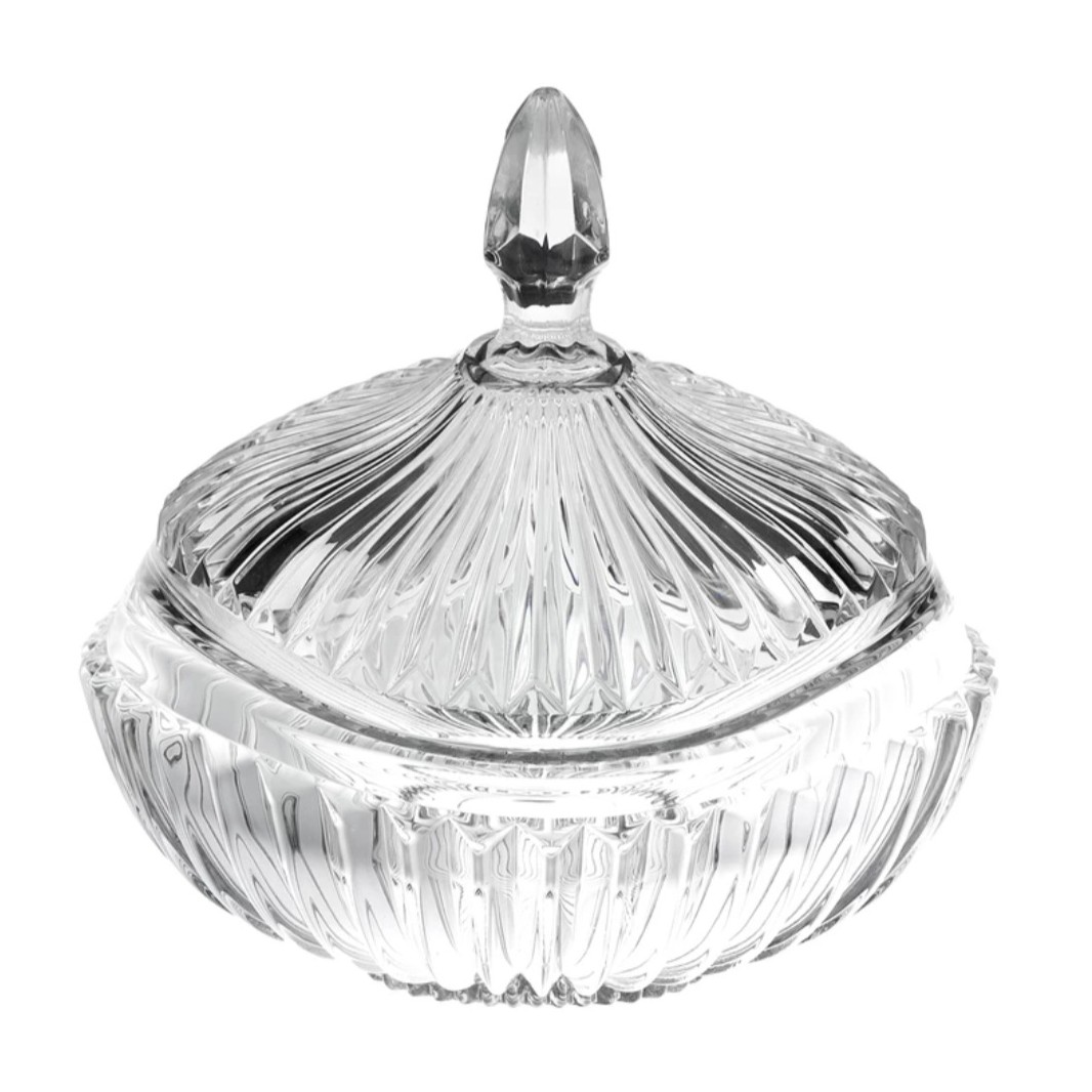 ابعاد ۲۰x۲۰x۲۰ سانتیمتر وزن. ۱۹۲۰ گرم ۲۰x۲۰x۲۰ سانتیمتر تعداد: ۱ قلم جنس :کریستال سطح : گود و درب دار نحوه شستوشو : شستوشو با دست و ماشین ظرفشویی