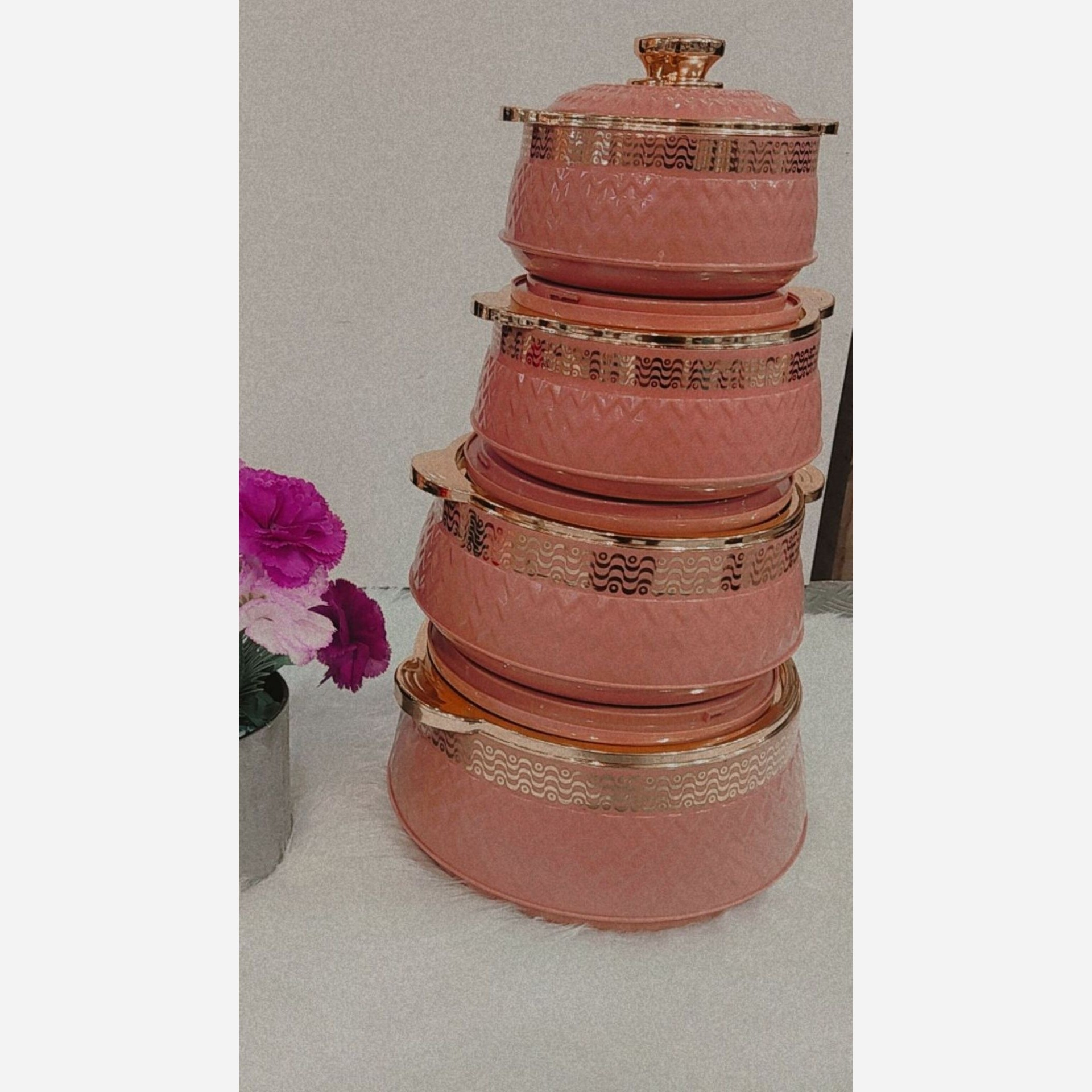 کشور تولید کننده : هند تعداد اقلام : 4 عدد رنگ بندی : سفید طوسی، گلبهی جنس بدنه : فایبرگلاس جنس داخلی : استیل ضد زنگ سایز : 850 ، 1200 ، 1700 ، 2500 میلی لیتر با بسته بندی محکم و مطمئن