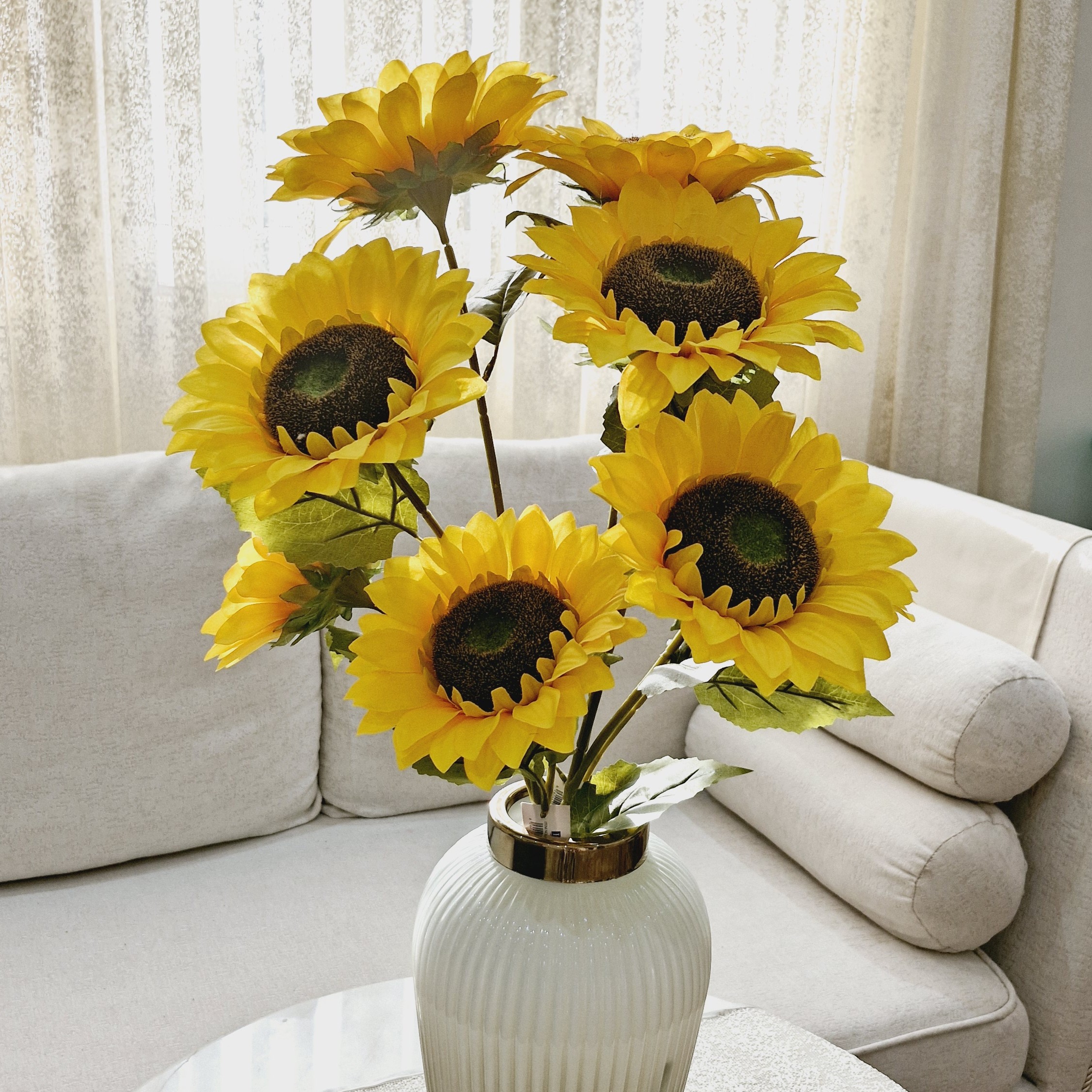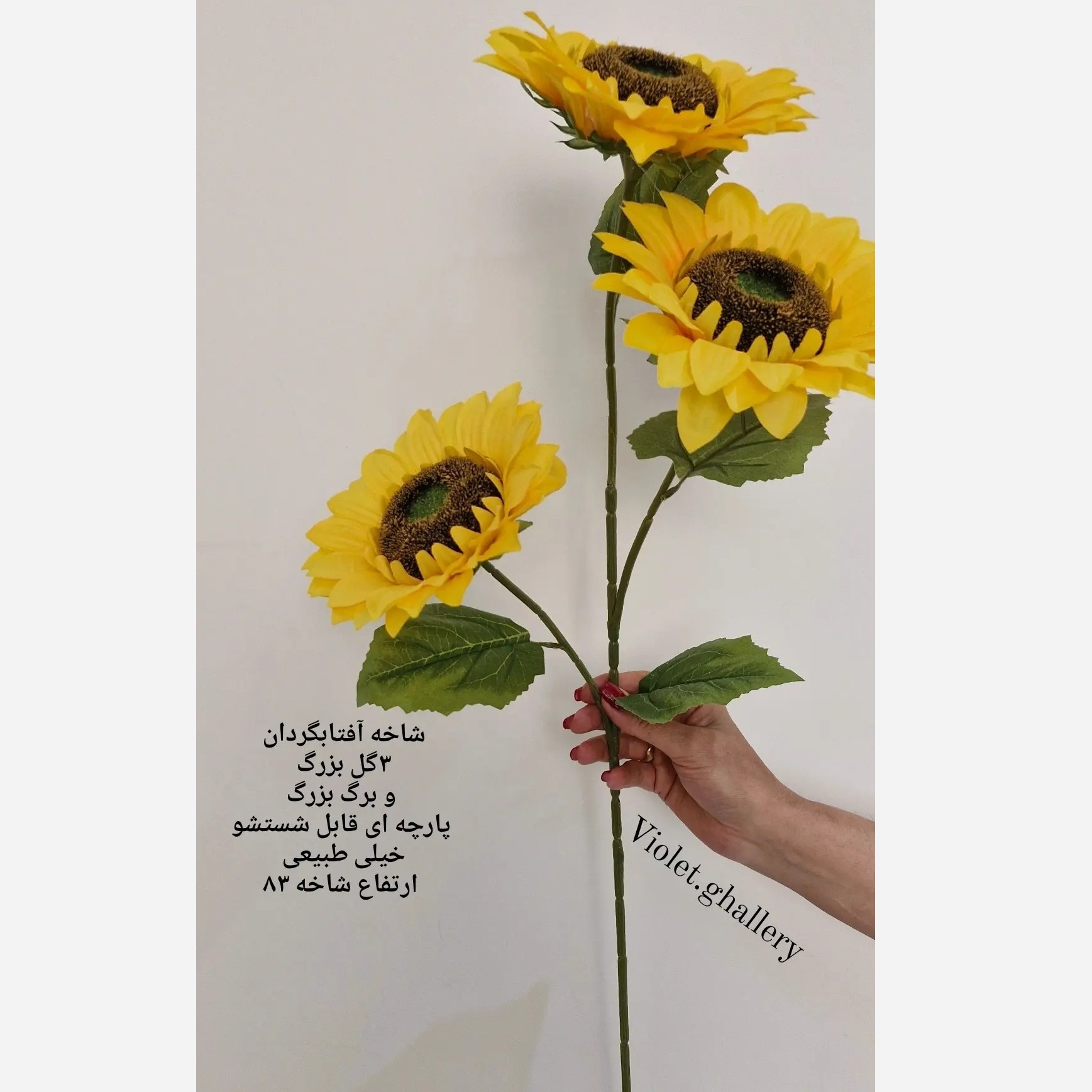 گل مصنوعی شاخه آفتابگردان گلی که هیچوقت تکراری نمیشه و خسته نمیشی از داشتنش انرژی مثبتی داره گل آفتابگردان و به هر دیزاین خونه ای میاد یه شاخه سه گل بزرگ داره همراه برگ