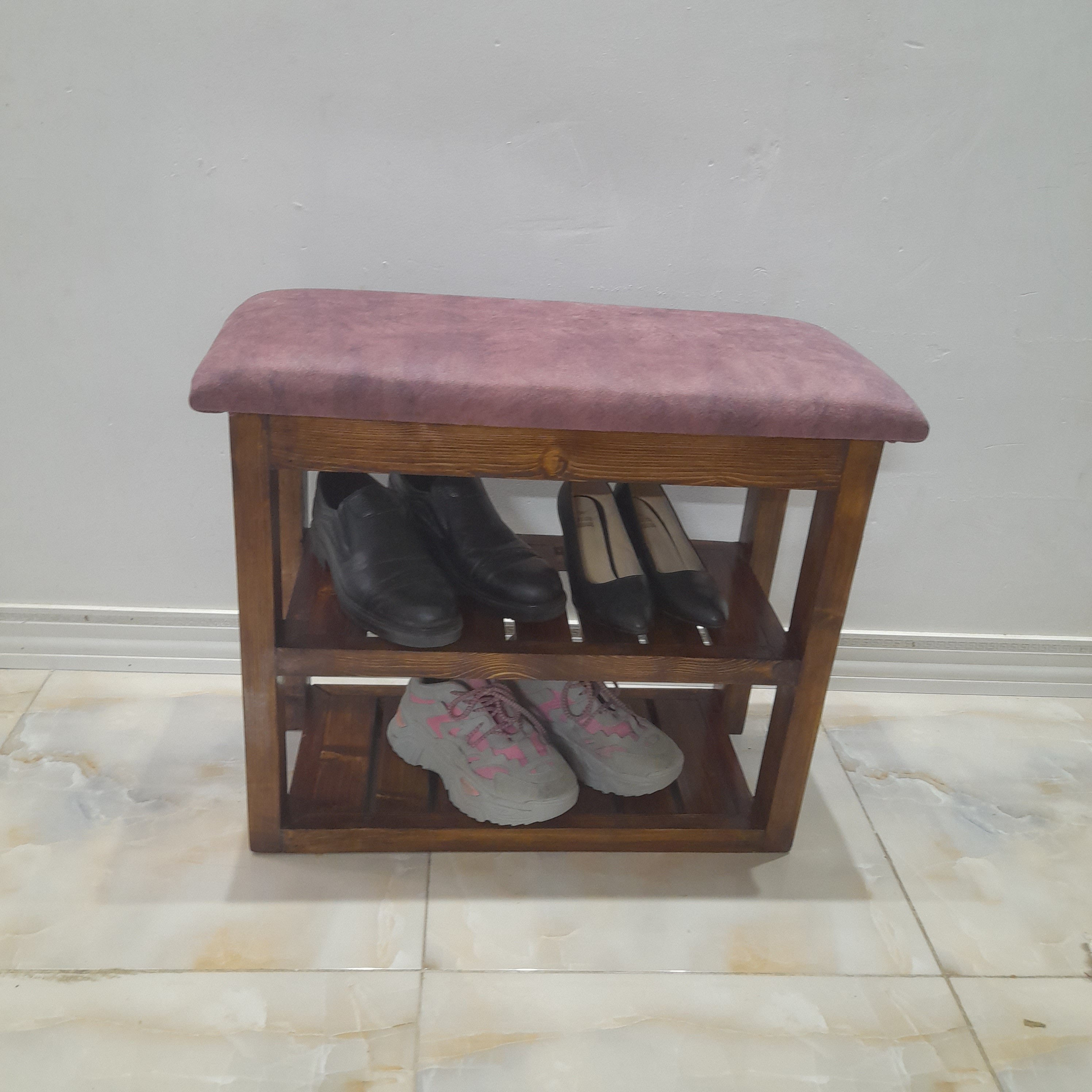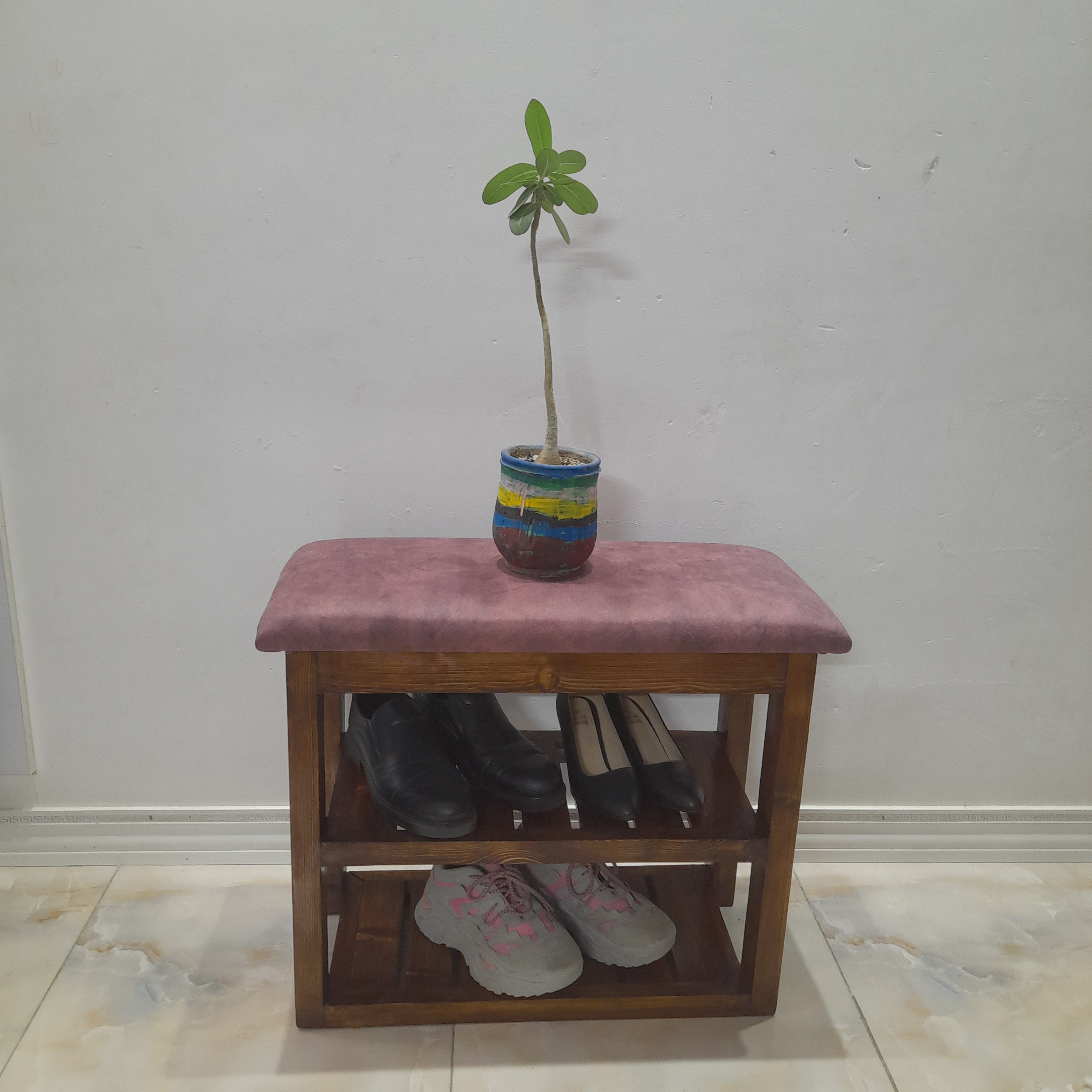 جاکفشی چوبی داری نشیمنگاه ابعاد این کار به طول 50 سانتی متر در ارتفاع 65 و عرض 30 سانتی متر میباشد ساخته شده از چوب روس جنس پارچه مخمل مبلی رنگ پارچه قسمت نشیمنگاه میتونید تغییر بدین قابل سفارش در ابعاد مورد نظر شما عزیزان