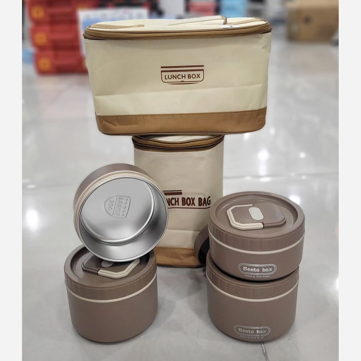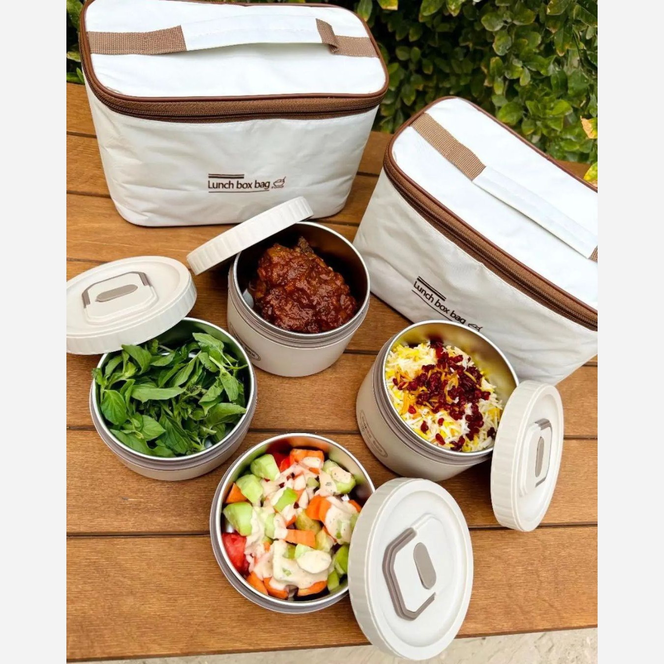 لانچ باکس 4 عددی و داری کیف گرم نگهدارنده عایق دار داخل استیل درب پیچی واشر دار و ضد نشتی حمل ونقل آسان کیفیت بسیار عالی و جنس درجه یک