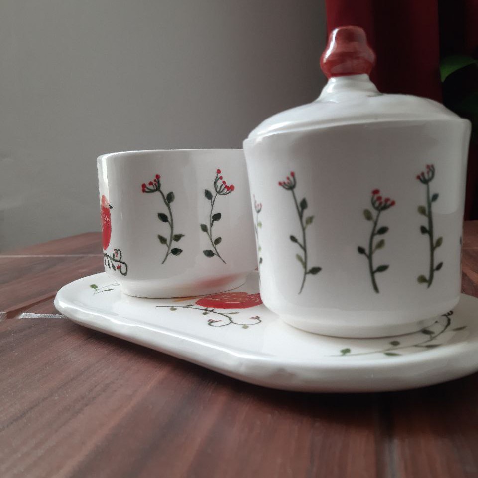 سرامیکی ماگ وقندون زیرماگی نقاشی دست هدیه کادو سرویس پذیرایی مبلمونسرا مدل 275917