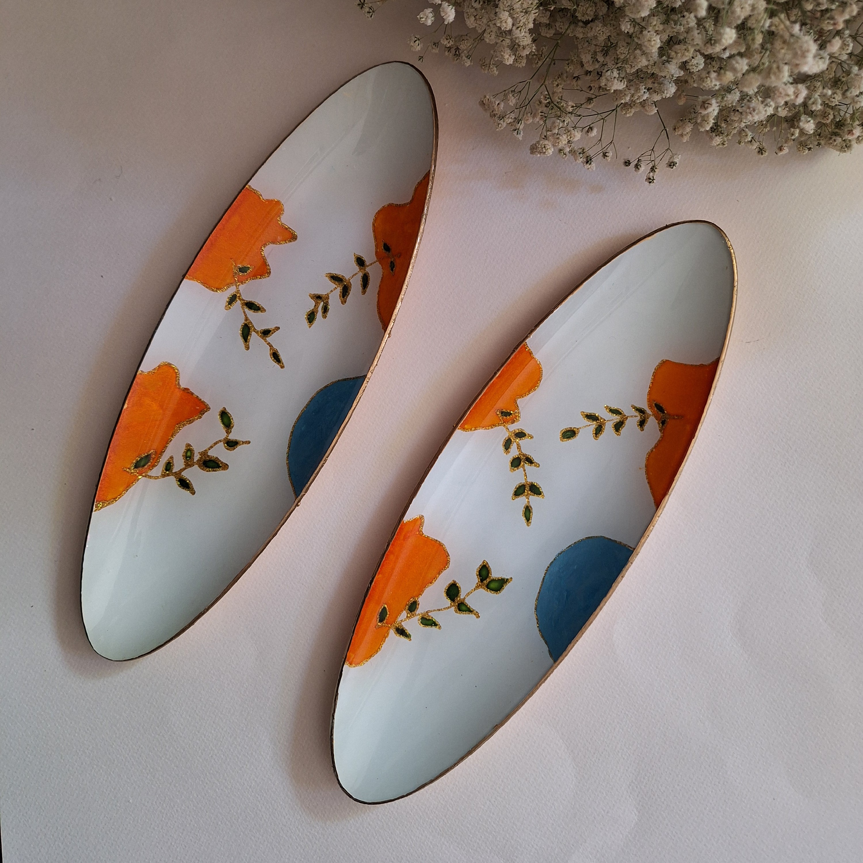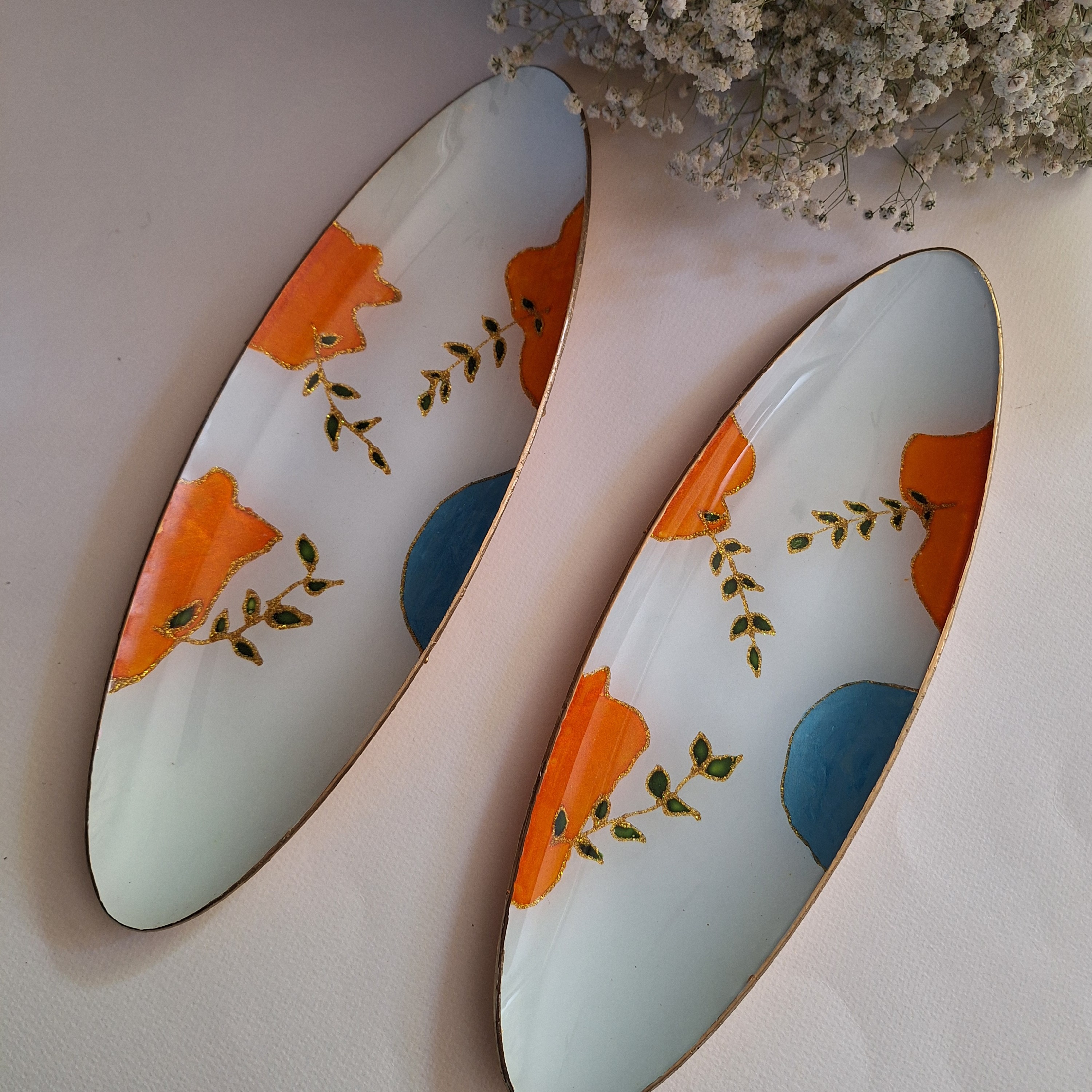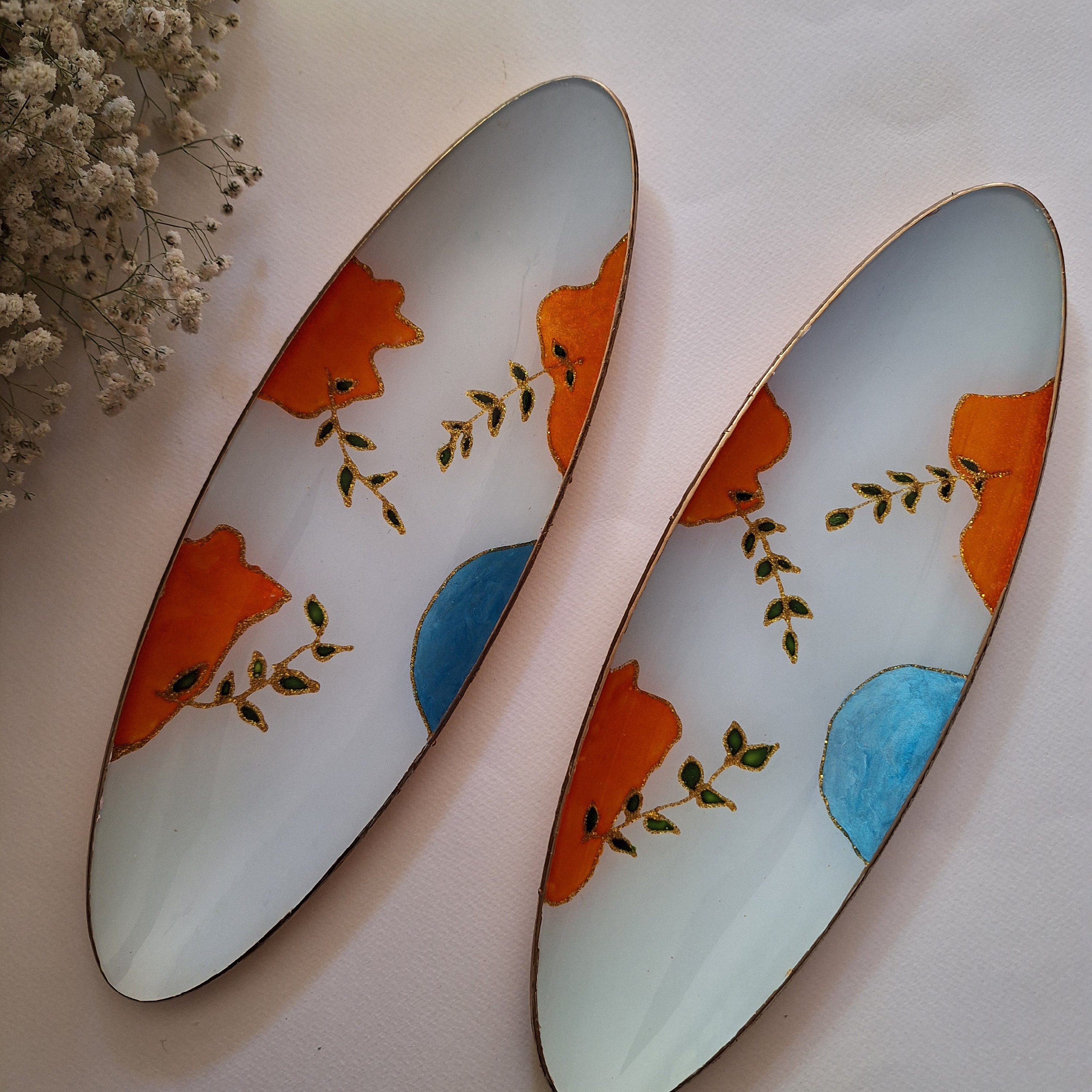 دیس ماهی خوری ویترای طرح مینیمال نقاشی شده پشت شیشه و کار دست رنگ ثابت و ضد آب قابل شست و شو و کاملا مصرفی