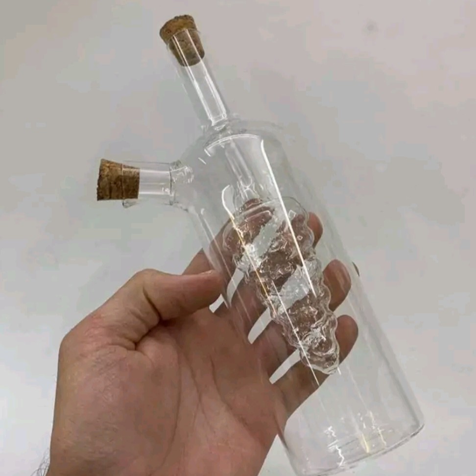 ظرف شیشه ای دو جداره حاضر محصولی بسیار جالب برای سر سفره، میز غذا خوری و آشپزخانه شماست. این ظرف شیشه ای که در درون آن یک ظرف شیشه ای کوچکتر تعبیه گردیده و در واقع دو جداره می باشد، تا در یک زمان و در یک ظرف بتوانید دو نوع چاشت را سرو نمایید. از این ظرف می توان برای سرو انواع آبلیمو، سرکه، آبغوره، روغن زیتون و ... استفاده نمایید. هر کدام از محفظه ها دارای خروجی جداگانه ای هستند که با یک چوب پنبه درب آن ها را بسته و باز می نمایید.