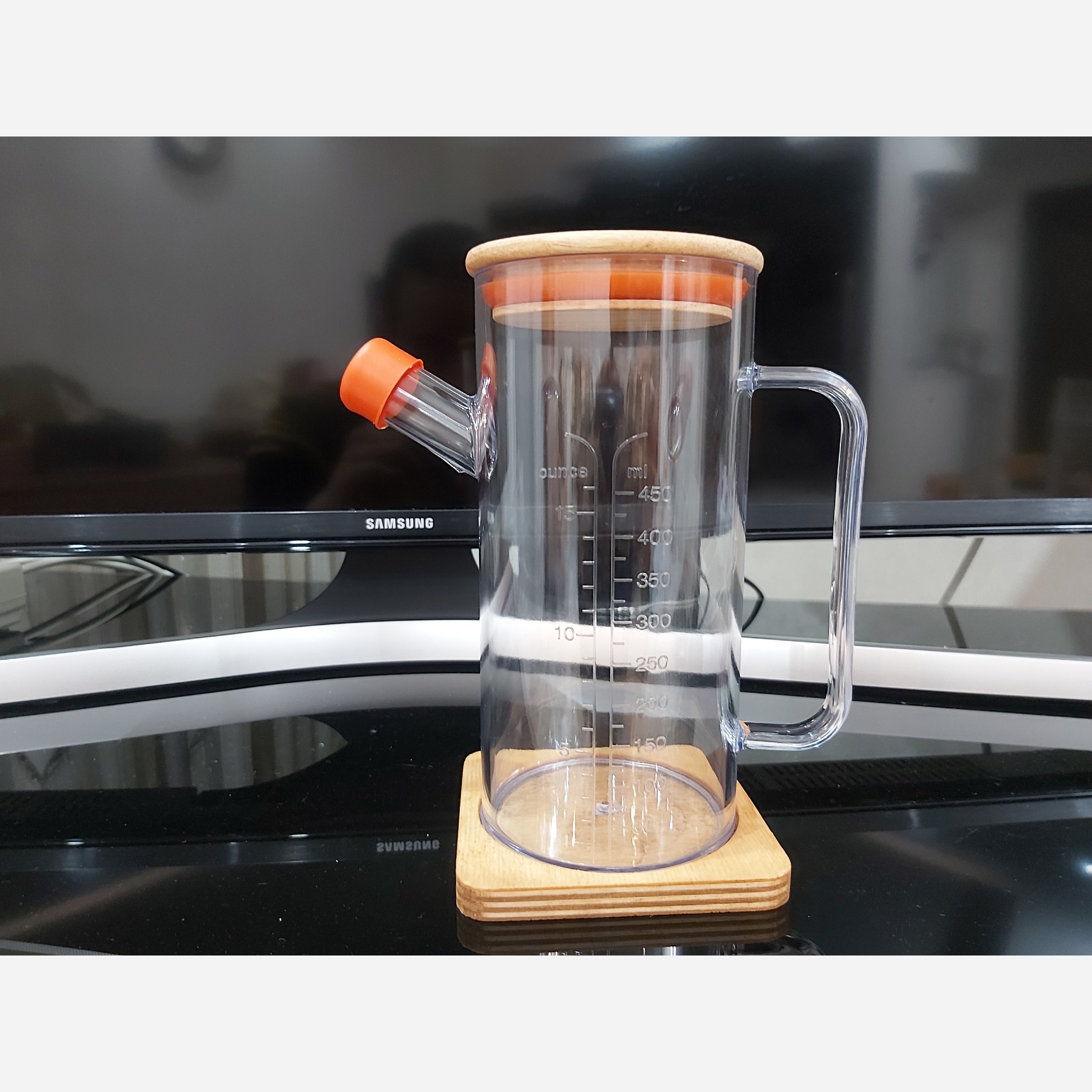 روغن ریز جنس اکرولیک نشکن حدود نیم لیتر درب و زیره چوب کیفیت عالی درب بامبو ،دارای واشر