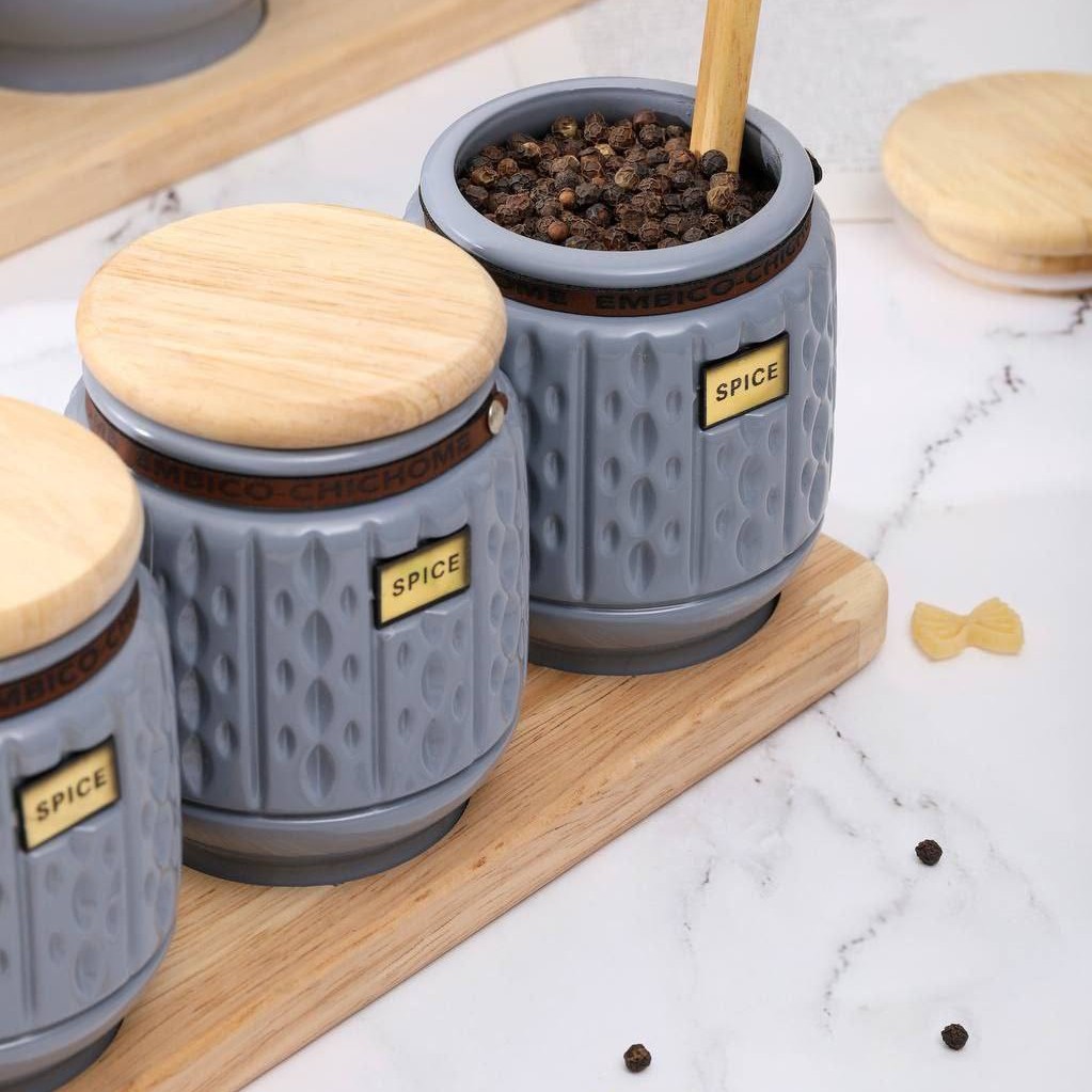 پاسماوری ادویه چوب شیشه جنس آیتم ها شیشه هست که رنگ ثابت کوره ای خورده و ثابت هست قابل شست شو و استند ها چوبی