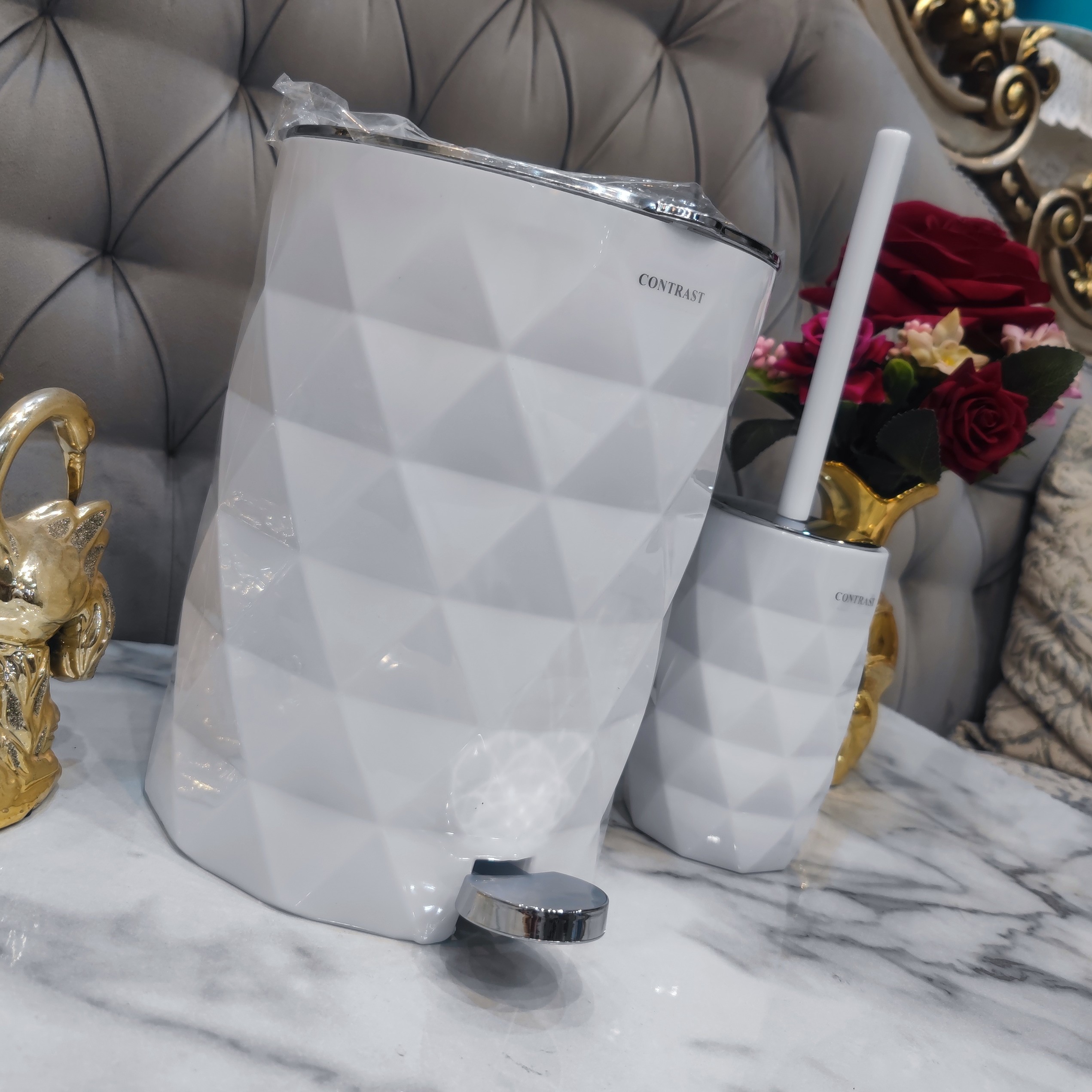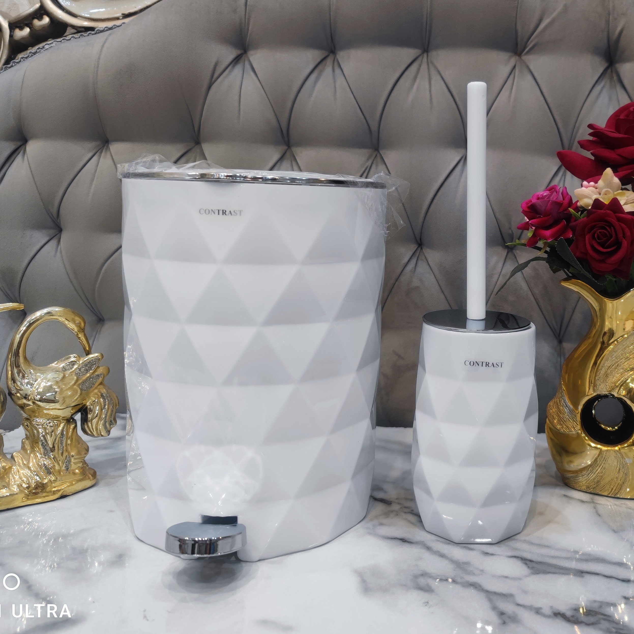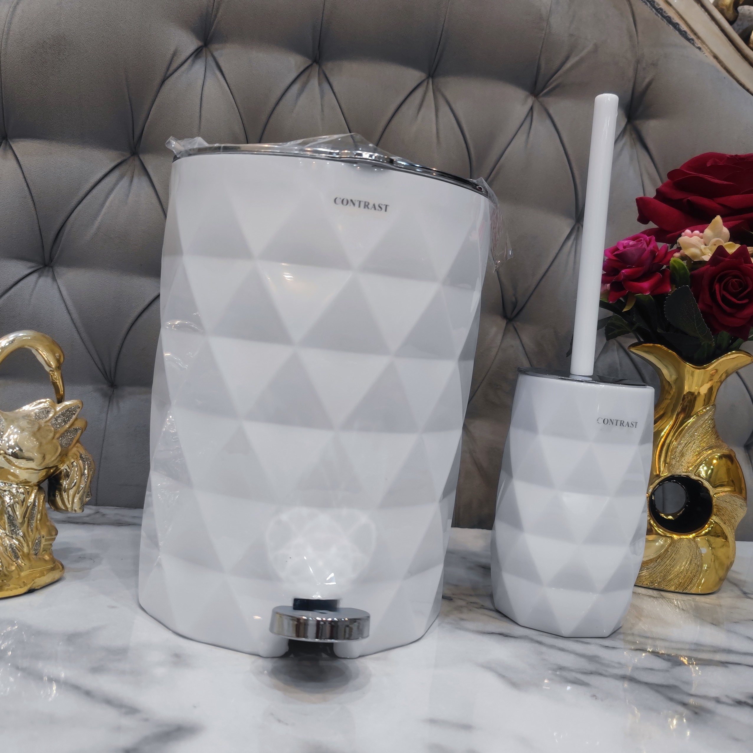 ست سطل و برس سرویس بهداشتی طرح آناناس سفید کروم کنتراست