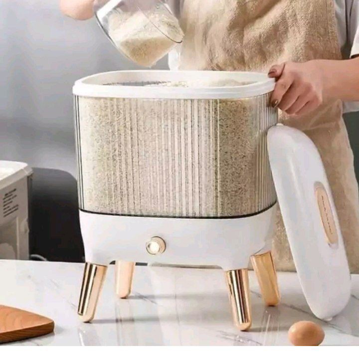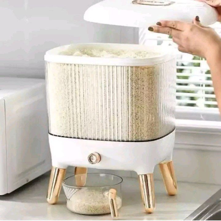 ببینید چی آوردیم براتون😍جا برنجی یک کیسه ده کیلویی جا میشه🤩 یه محصول پرکاربرد و به صرفه جاحبوباتی و جابرنجی بهترین محصول برا کساییکه مشکل جا دارن خیلی شیک و با کیفیت جابرنجی پایه طلایی😍 محصول وارداتی درجه یک جنس بدنه ترکیب اکرولیک و ABS دارای محفظه نگهدارنده سیر و میخک و عدم حشره زدن برنج و حبوبات ابعاد جابرنجی 👇 طول 32 سانتیمتر عرض 23 سانتیمتر ارتفاع 39٫5 سانتیمتر
