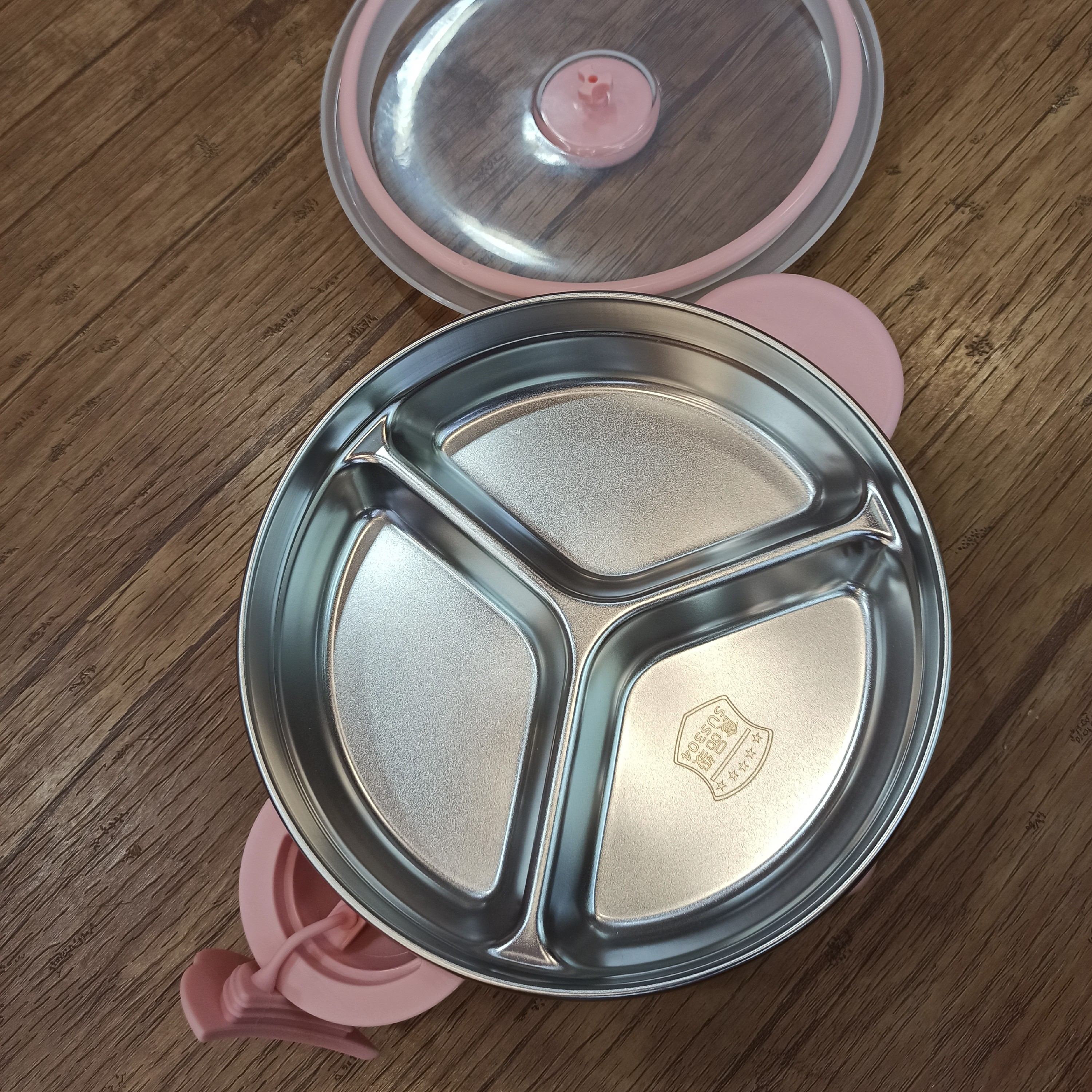 زیر ظرف غذا دارای یک واشر سیلیکونی است که جلوگیری میکنه از لیز خوردن ظرف غذا بر روی میز جنس استیل 304 میباشد طبق عکس یکی از دسته های ظرف غذا به صورت سیلیکونی هستش و میتونین از جای خودش دربیارین و آب جوش بریزین ک غذا رو گرم کنه