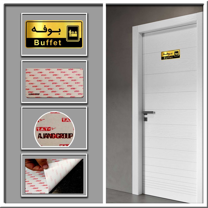 تابلو نشانگر گروه آژنگ طرح بوفه کد OFC09 برای سهولت دسترسی کارکنان و ارباب رجوع در ادارات و سازمان ها، شرکت ها و ... قابل استفاده است. این تابلو ازجنس مولتی استایل طلایی خشدار ساخته شده ویکی ازنقاط قوتش این است که بانور محیط انعکاس زیبایی به خودش میگیرد درنتیجه بهتر خوانده میشود وبا هرنوع دکوراسیونی همخوانی دارد و یکی از آیتم های مهم تابلو راهنما خوانابودن است که این یکی از ویژگی های منحصربه فرد این محصول میباشد و همچنین دارای سه مدل علائم می باشد که برای هرمجموعه ی بین المللی کاربرد دارد . با چسب دو طرفه ای مقاومی که دارد موجب نصب آسان و صرف وقت کم برای مشتری گردیده است.