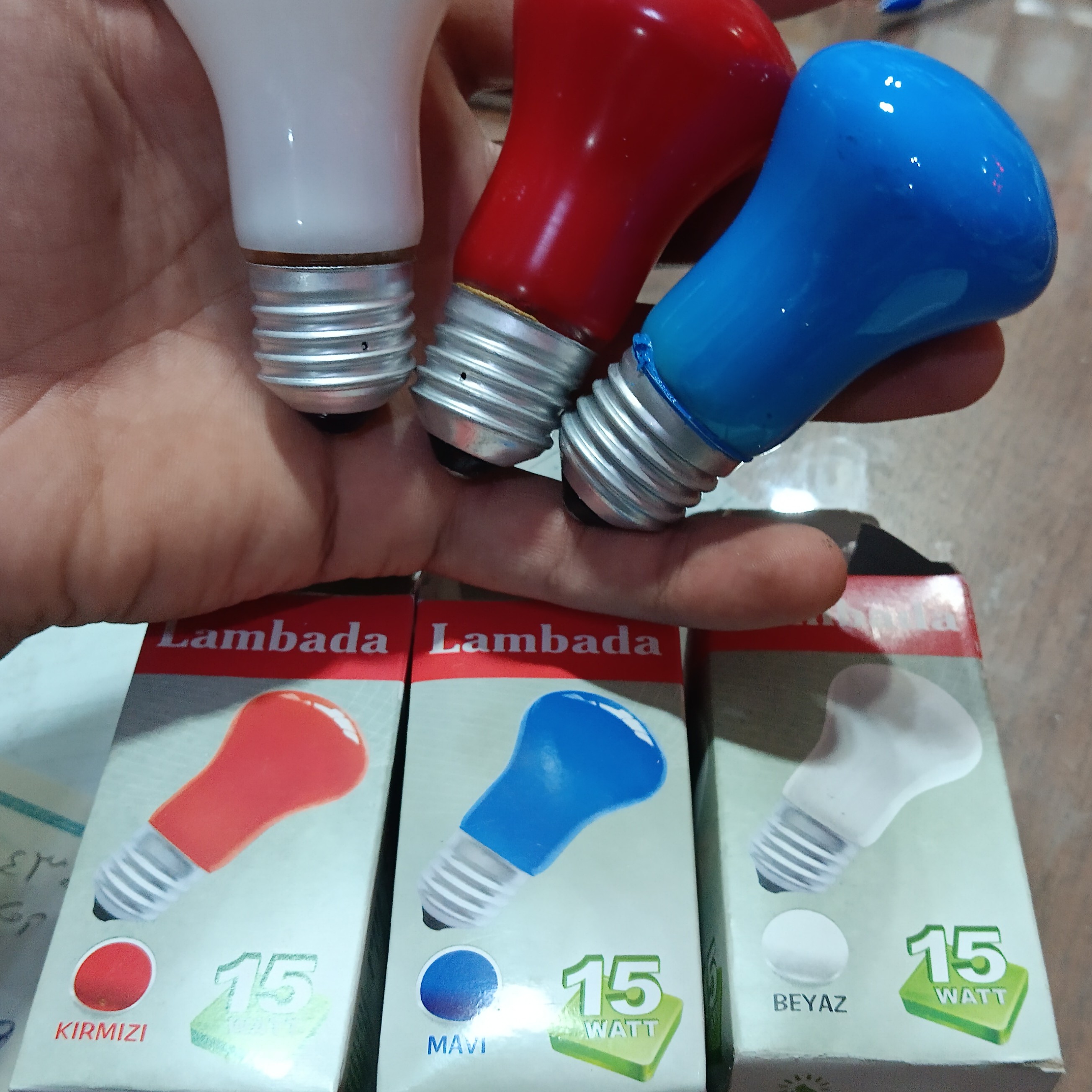 لامپ شب خواب 15 وات. e27 رشته ای کم مصرف با رنگ های سفید آبی قرمز زرد، این لامپ ها دارای کمی حرارت هستند که واسه جوجه ها هم استفاده میشه