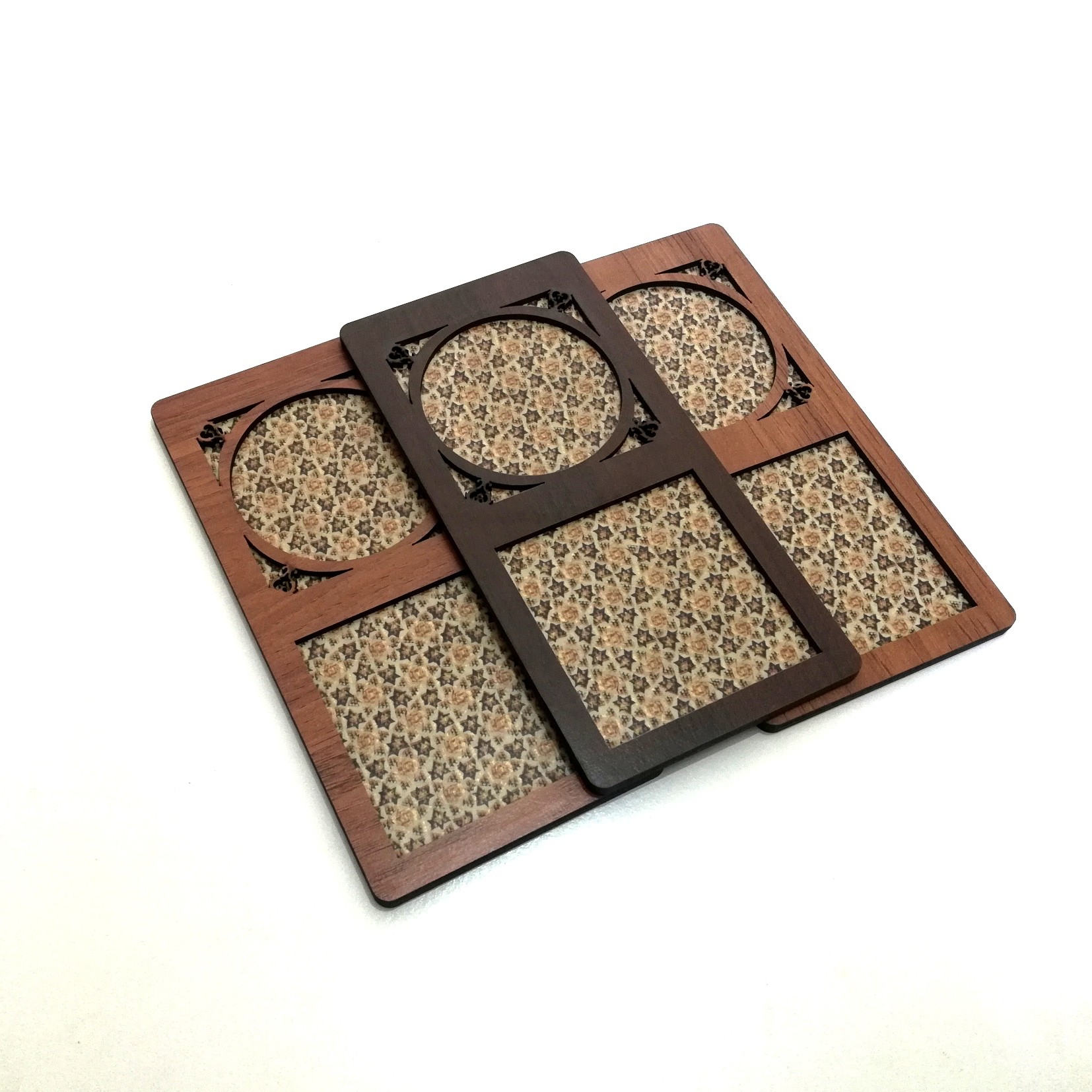 ☑️زیر لیوانی و استکانی چوبی سنتی در طرح و تعداد متفاوت ☑️ در رنگ های قهوای روشن ، تیره ، سنتی خاتم ، مینا ☑️ جنس ام دی آف درجه 1 برای جلوگیری از لک های روی میز و ایجاد جذابیت در سرو ☑️ امکان حک لوگو، برند، و متن تبلیغاتی دلخواه ☑️ سفارش تک و عمده از سراسر کشور