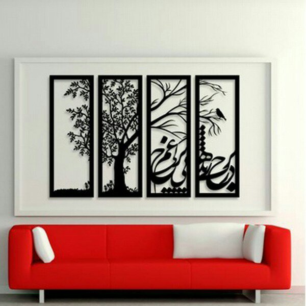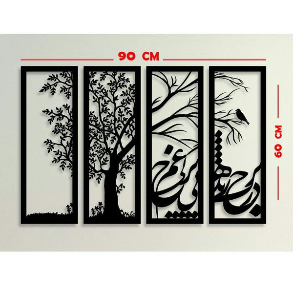 تابلوی 4 تکه درخت تزیین کننده دیوار منزل طراحی طرح با نرم افزار و سپس تولید از چوب ام دی اف مرغوب با دستگاه لیزر