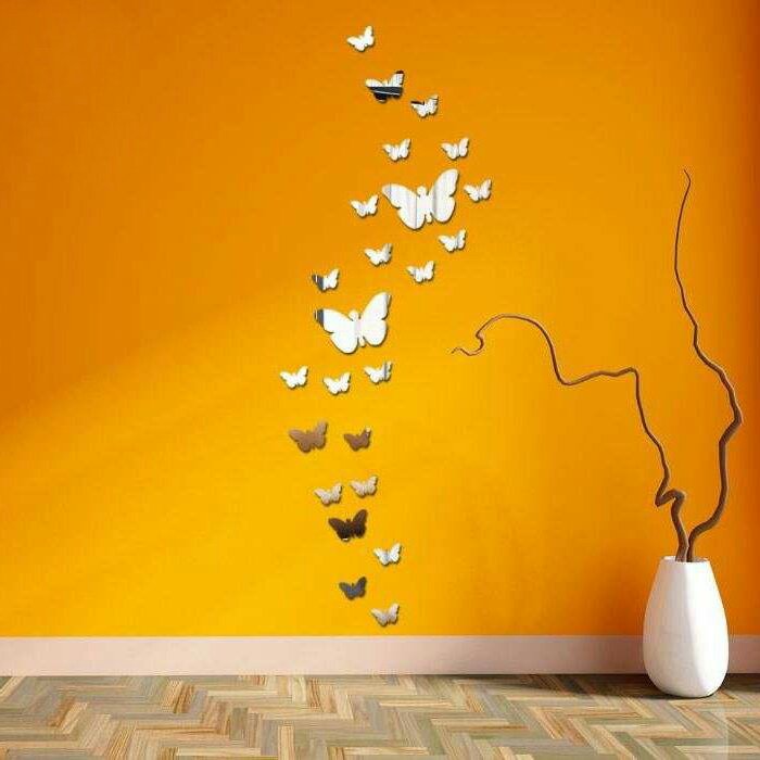 پروانه های آینه ای با چسب پشت شون به دیوار نصب میشوند پروانه از جنس مولتی استیل بوده و پشت تمام قطعات چسب دار میباشد