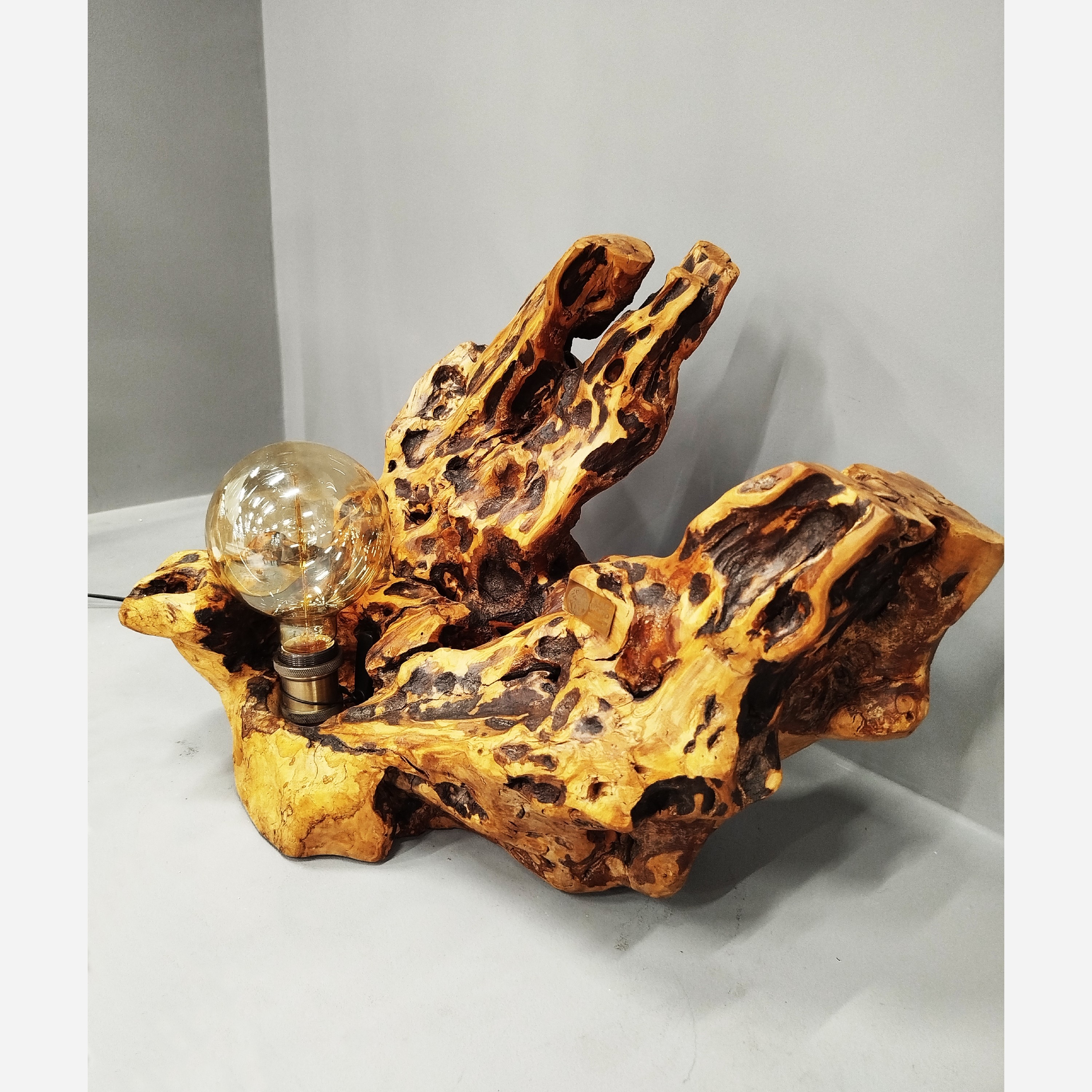 آباژور رومیزی از ریشه طبیعی درخت زیتون ساخته شده است ،که هر قطعه آن منحصر به فرد و زیباست . طراحی ارگانیک و بافت خاص چوب زیتون ،این آباژور را به یک اثر هنری تبدیل کرده که نه تنها نور ملایمی به فضا میبخشد ،بلکه جلوه ای خاص به دکوراسیون منزل شما اضافه می کند. با انتخاب این آباژور به طبیعت نزدیکتر شوید و زیباییهای آن را به خانه تان ببرید.