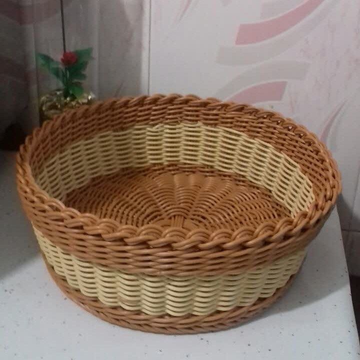 سبد کف گرد قطر 23سانت ارتفاع حدود 9سانت مناسب میوه .،سبزی و.... جنس مفتول فشرده پلاستیکی