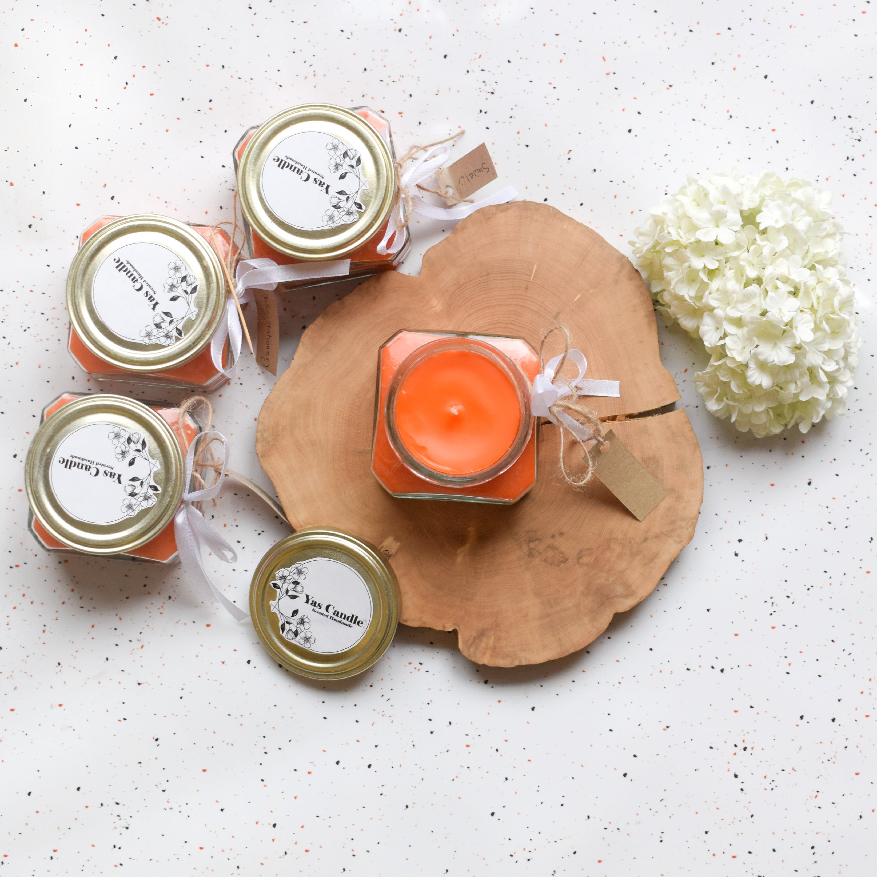 شمع دست ساز معطر با رایحه پرتقال با رایحه انار و طالبی هم قابل سفارشه و دربین محصولات غرفه اضافه موجود هستن ... شیشه شمع 8 ضلعی و ابعاد اون 7 سانتیمتر * 7 سانتیمتر * 5.5 سانتیمتر هست.