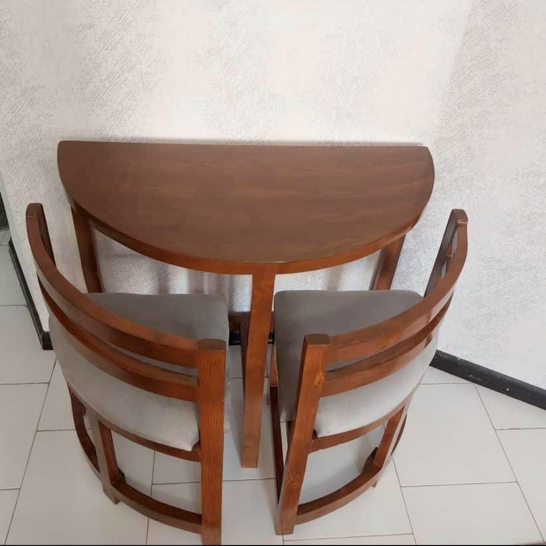 جنس صفحه میز ام دی اف، جنس پایه های میز و صندلی ها چوب روسی