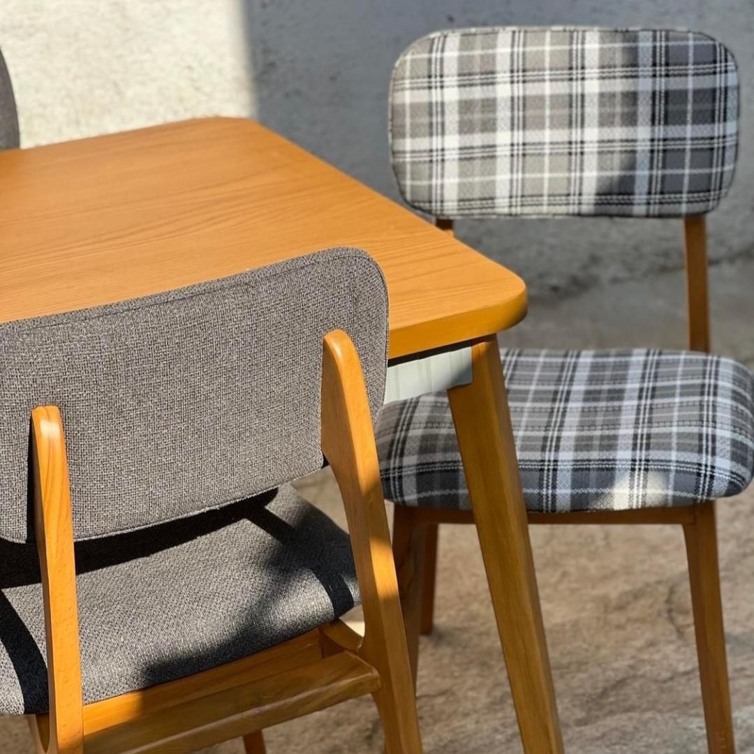 جنس صفحه میز ام دی اف، جنس پایه های میز و صندلی ها چوب روسی