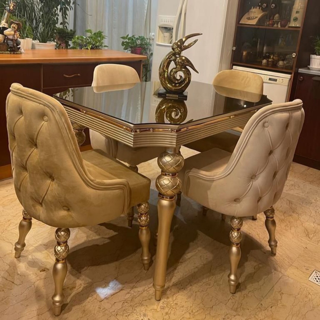 جنس صفحه میز ام دی اف، جنس پایه های میز و صندلی ها چوب روسی