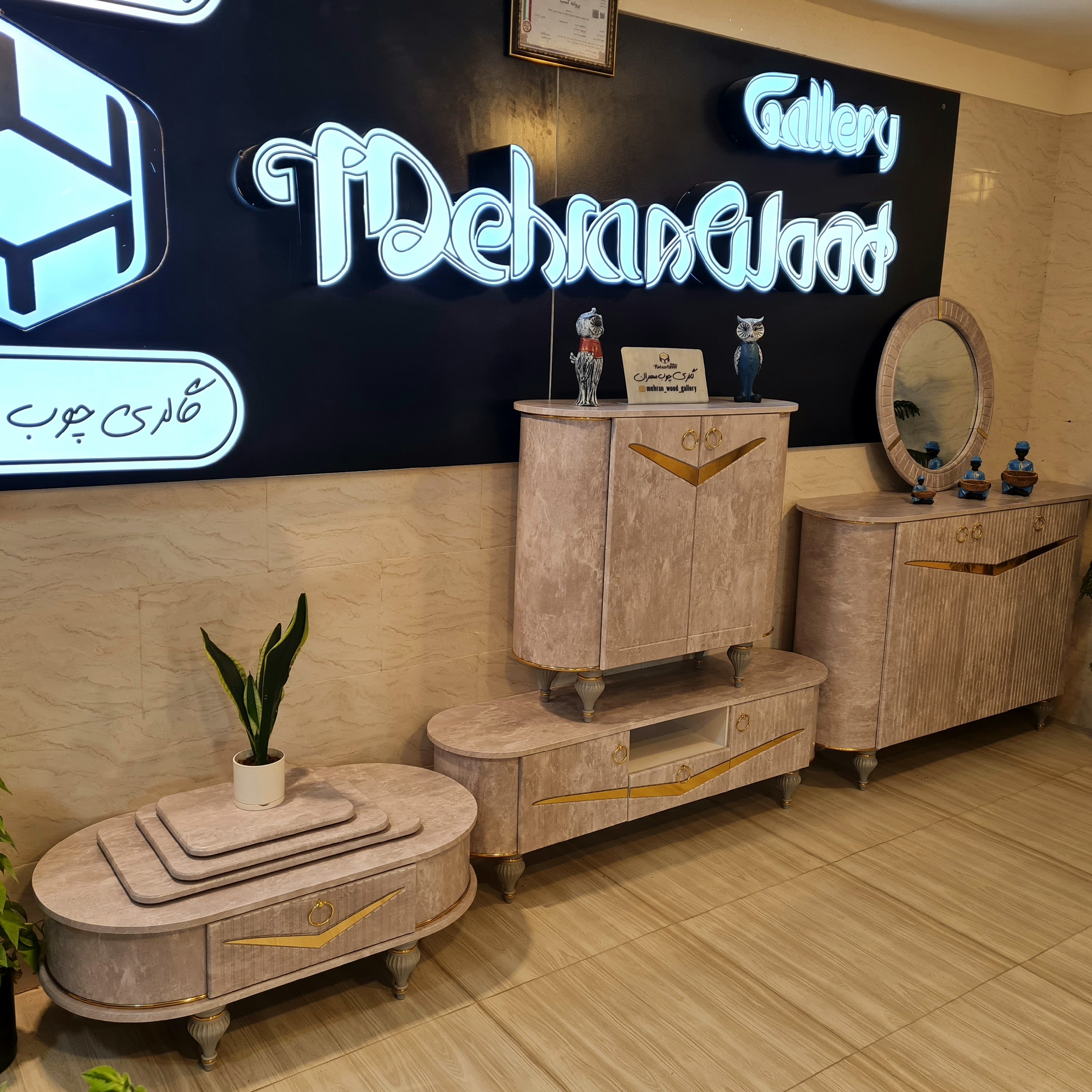 ست کامل میز جلومبلی 4تکه میز تلویزیون جاکفشی آینه و کنسول تمام وکیوم FRP شرکتی تهران رنگ ابروباد طرح کرکره ای مبلمونسرا مدل 229756