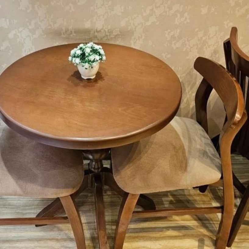 جنس صفحه میز ام دی اف، جنس پایه های میز و صندلی ها چوب روسی