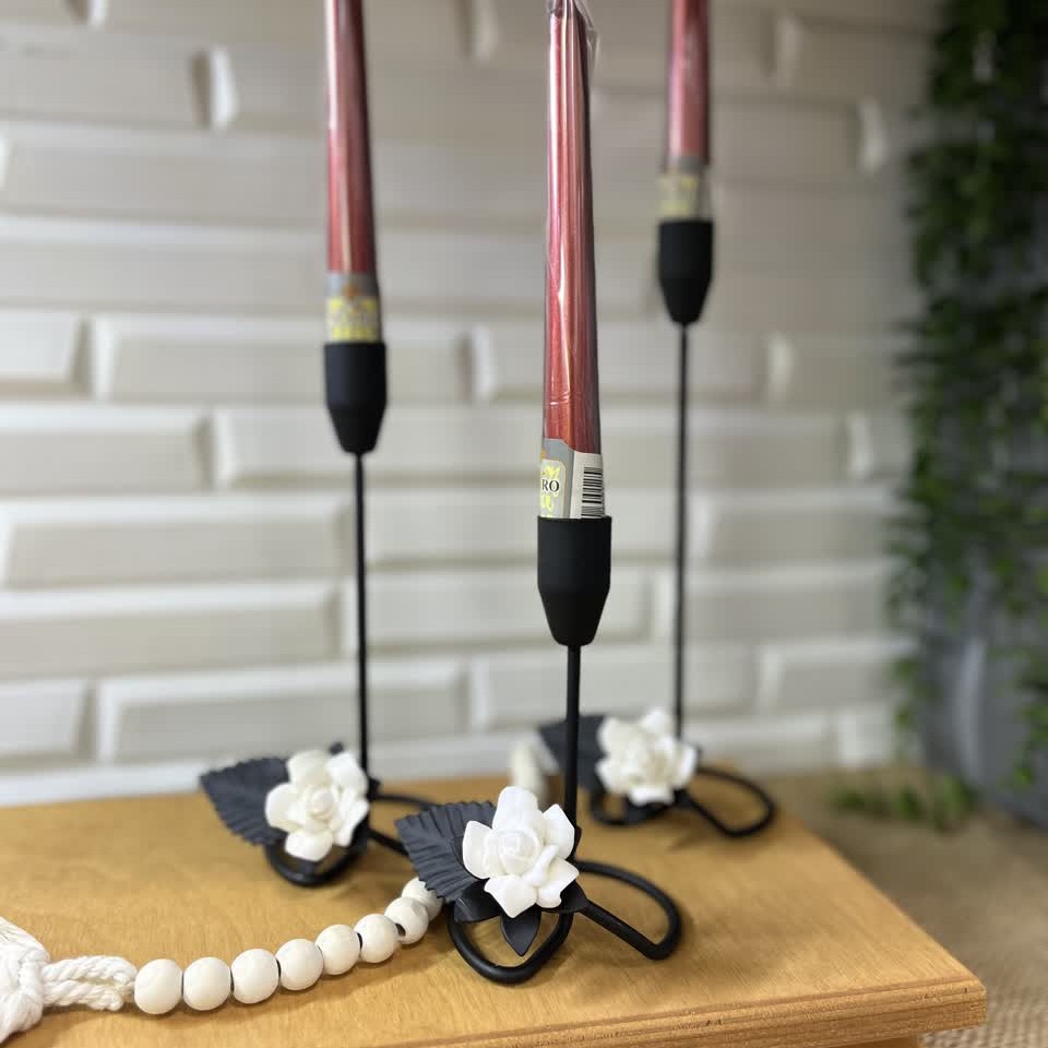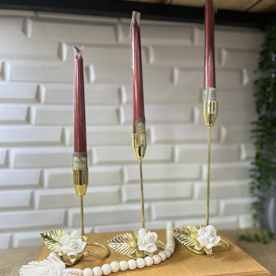 شمعدان فلزی گل چینی ست 3 تایی رنگ ثابت مبلمونسرا مدل 279657