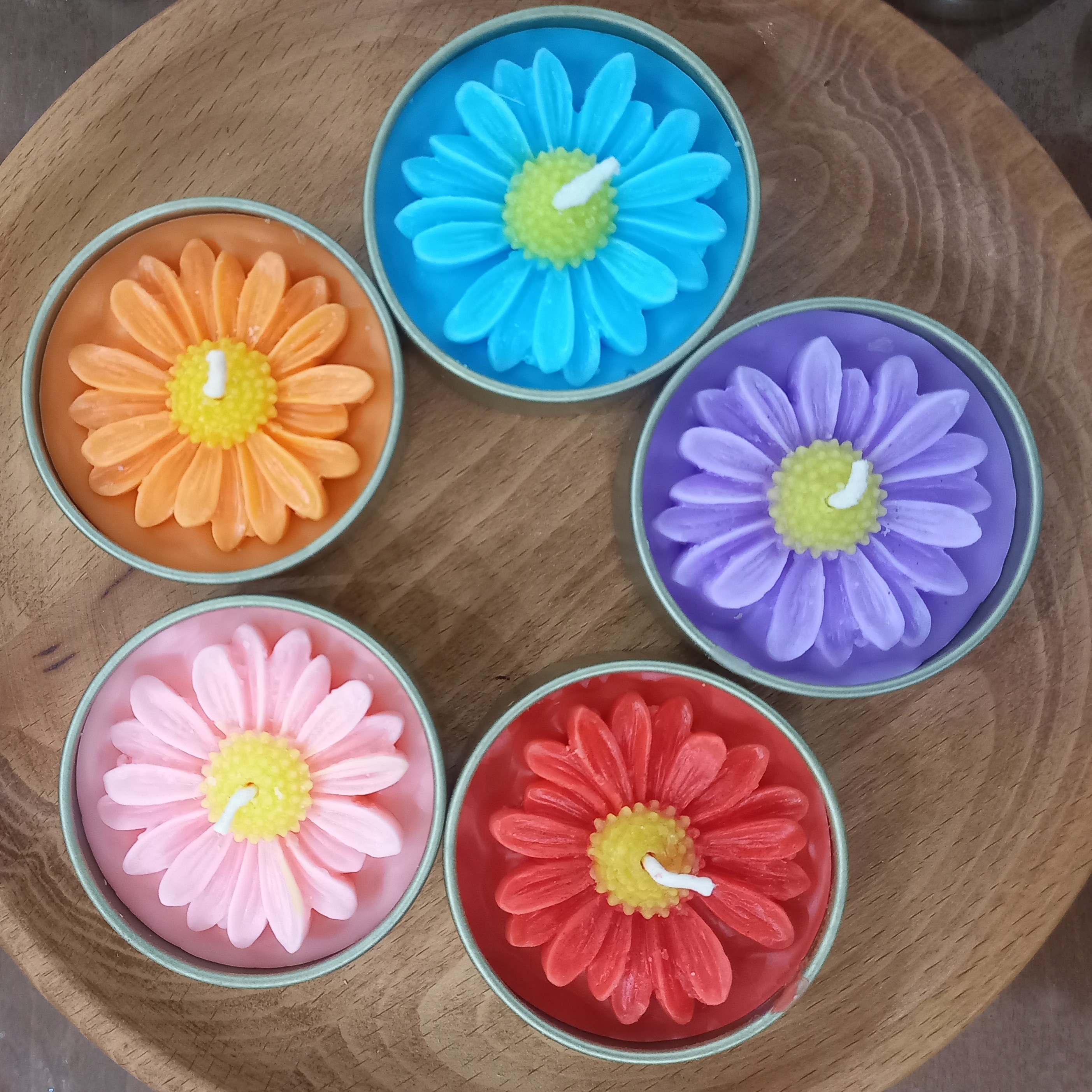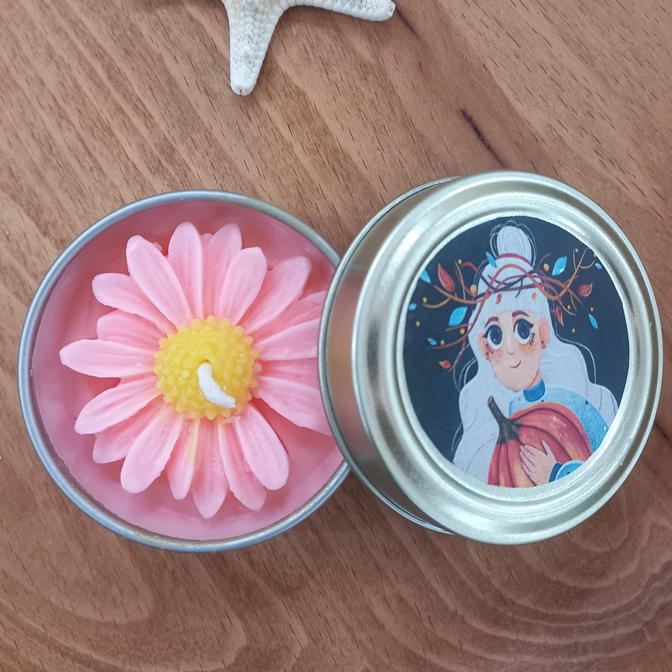 شمع قوطی با تزیین بابونه مناسب هدیه