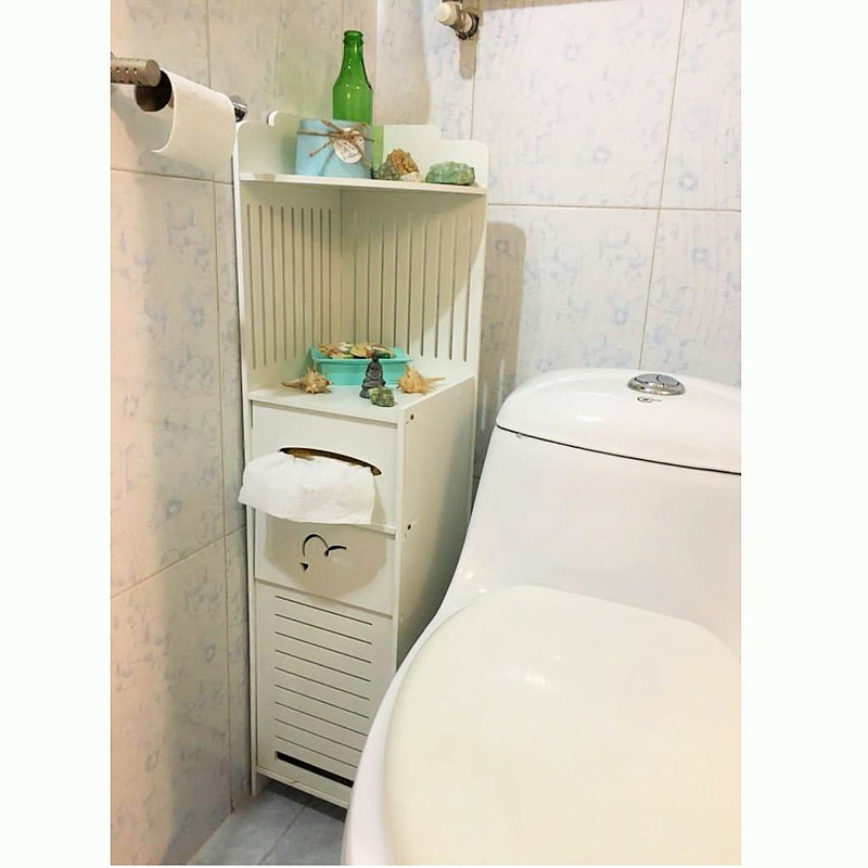 استند کنجی سرویس بهداشتی (یک طبقه) محصول ایرانی با طراحی و تولید خونه خاص بوده که از ورق درجه یک پی وی سی تهیه شده و مناسب سرویس بهداشتی، اتاق خواب، آرایشگاهها و ... می باشد. این محصول نظم دهنده انواع لوازم بهداشتی و آرایشی، کنار توالت فرنگی طراحی شده و دارای جای مخفی سطل و دستمال کاغذی است. جنس محصول کاملا قابل شستشو است و با خیال راحت در سرویس بهداشتی، مکان های مرطوب و حتی در تماس مسقیم با آب قابل استفاده می باشد و به هیچ عنوان خراب و پوسته پوسته نمی شود. طرح محصول طرح بوده و ساده، شیک و پرطرفدار است