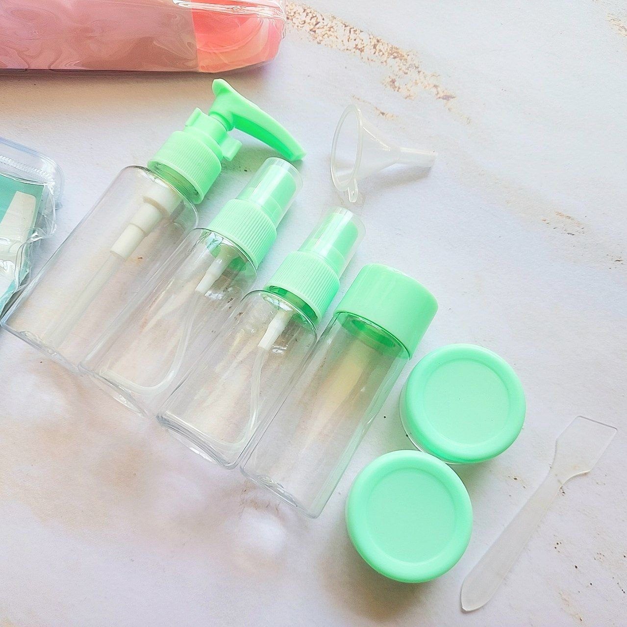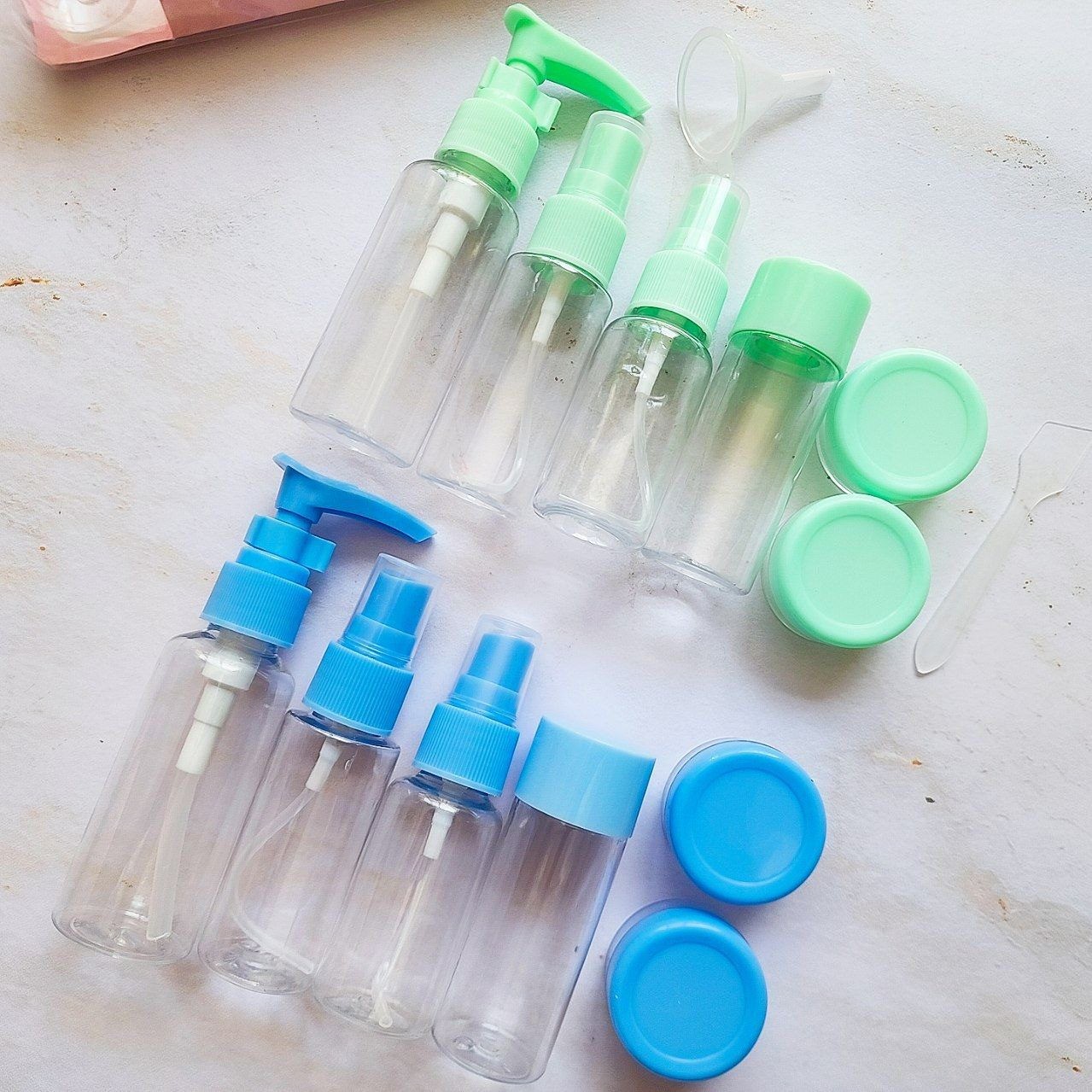🟦حمل آسان و کوچک برای سفر 💗کاور زیپی و شیک 🟦شامل یک عدد بطری پمپی 💗دو عدد بطری اسپری 🟦یک عدد بطری استوانه ای درب دار 💗دو عدد ظرف کاسه ای و قاشقک 🟦برای نگهداری مواد آرایشی از جمله کرم پودر و انواع شستشو دهنده پوست و مو 💗مناسب هدیه دادن