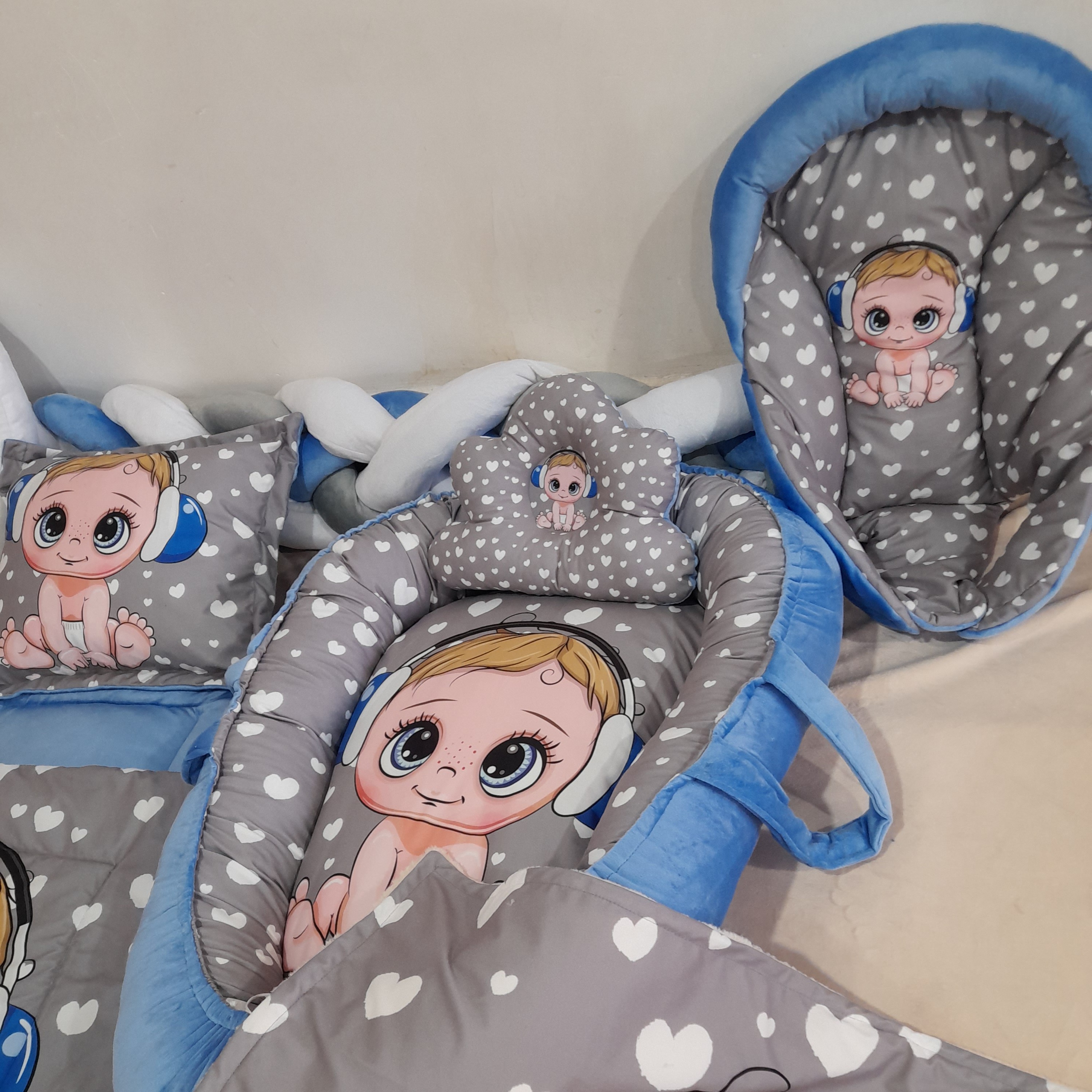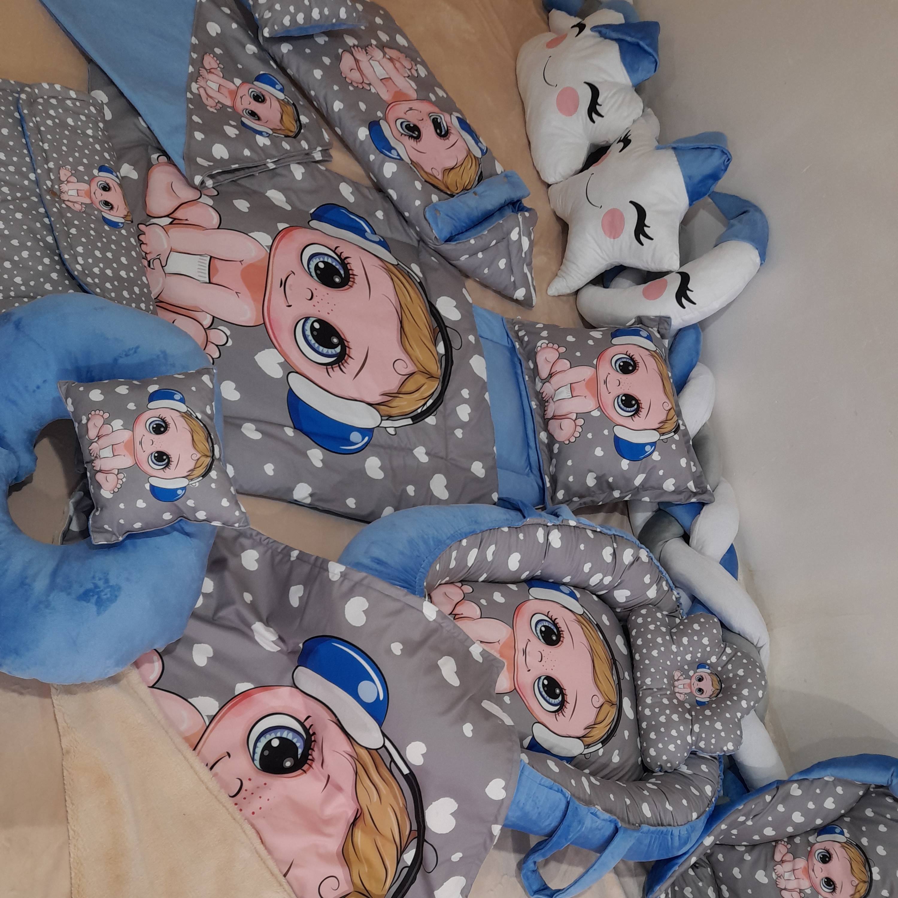 جنس پارچه هامون مخمر کالیفرنیا هست متریال به کار رفته درجه یک هست ارسال با تیپاکس این ست شامل لحاف و تشک و بالش دو منظوره مسافرتی تشک گارد پتو برای تشک گارد بالش فرم دهی بالش شیردهی با بالش تکیه گاه تشک تعویض پوشک با بالش آغوشی کیسه خواب پتو دور پیچ گیس باف دو متر کنار تخت نوزاد کوسن ابر کوسن ستاره کوسن ماه
