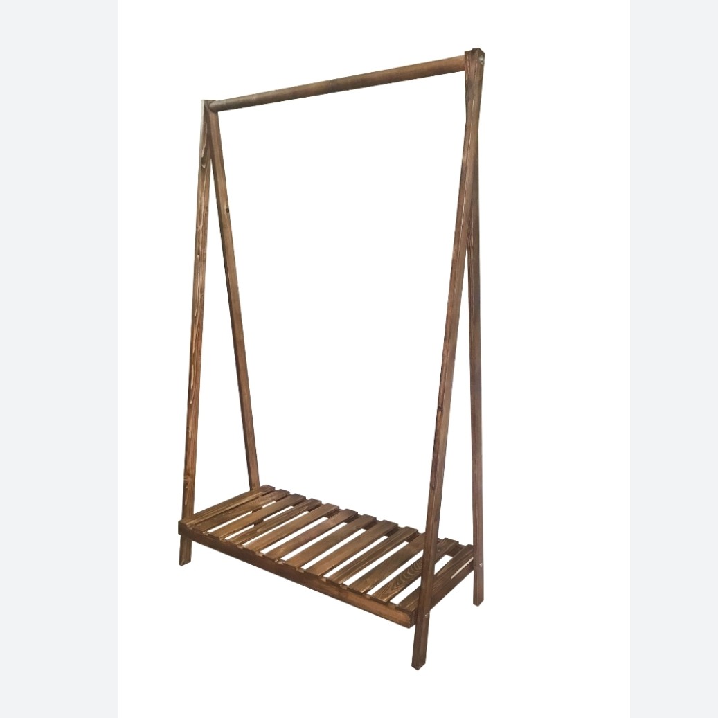 رگال لباس ایستاده چوبی ارسال رایگان از جنس چوب نراد که با اتصالات پیچی به هم متصل شده باظرفیت بالای آویزان کردن لباس در هر محیطی اعم از منزل و یا محل کار