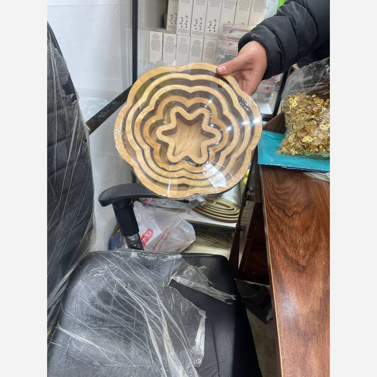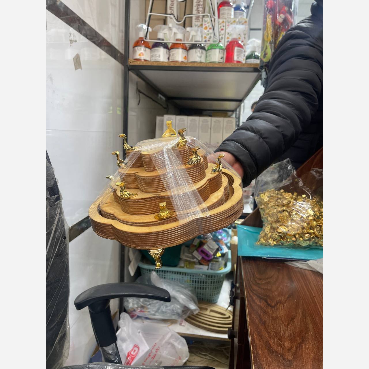 سینی پذیرایی 5تکه طرح گل پایه دار سینی مزه خوری 5تکه پایه دار ست پذیرایی چوبی پایه دار ست پذیرایی پایه دار طرح گل مبلمونسرا مدل 271843