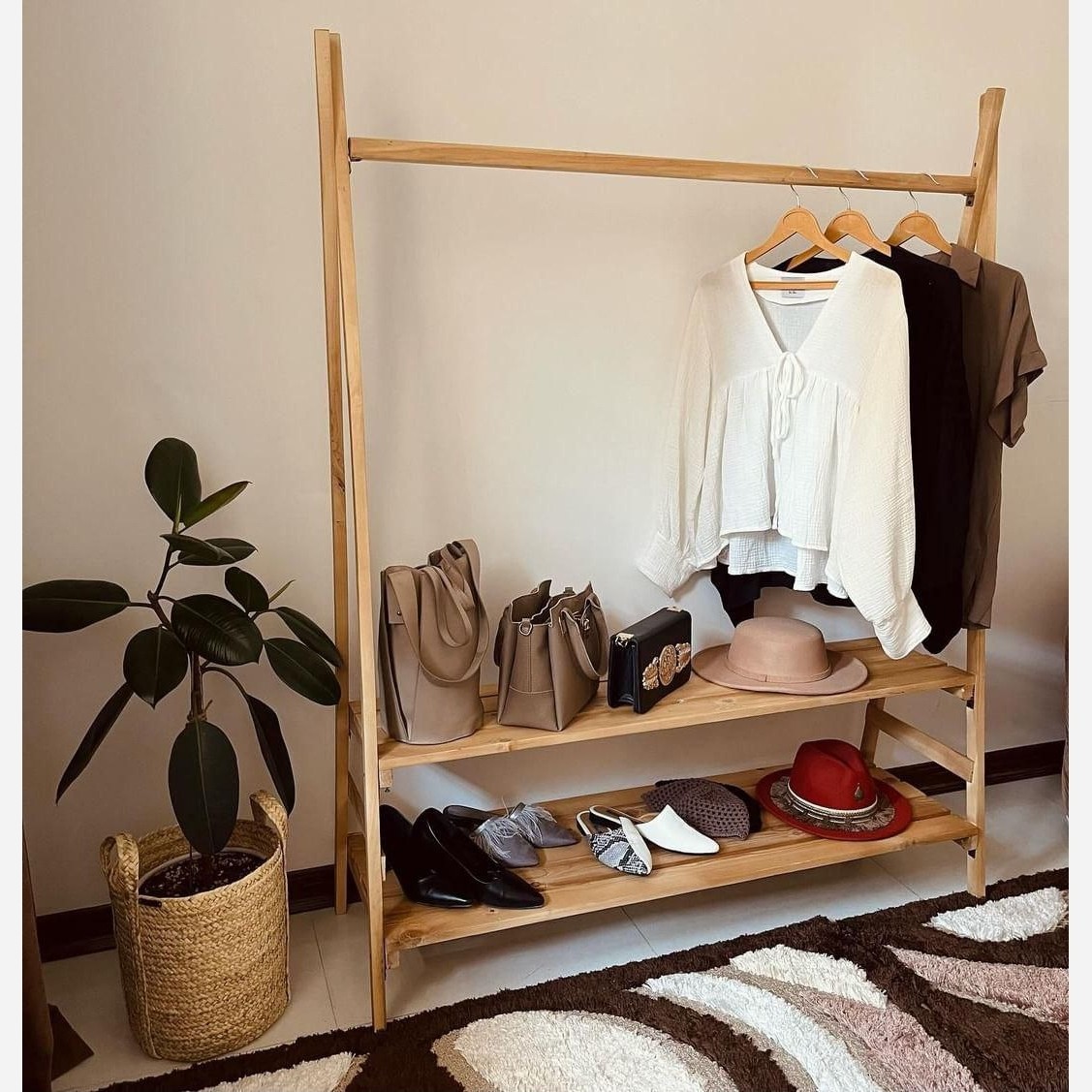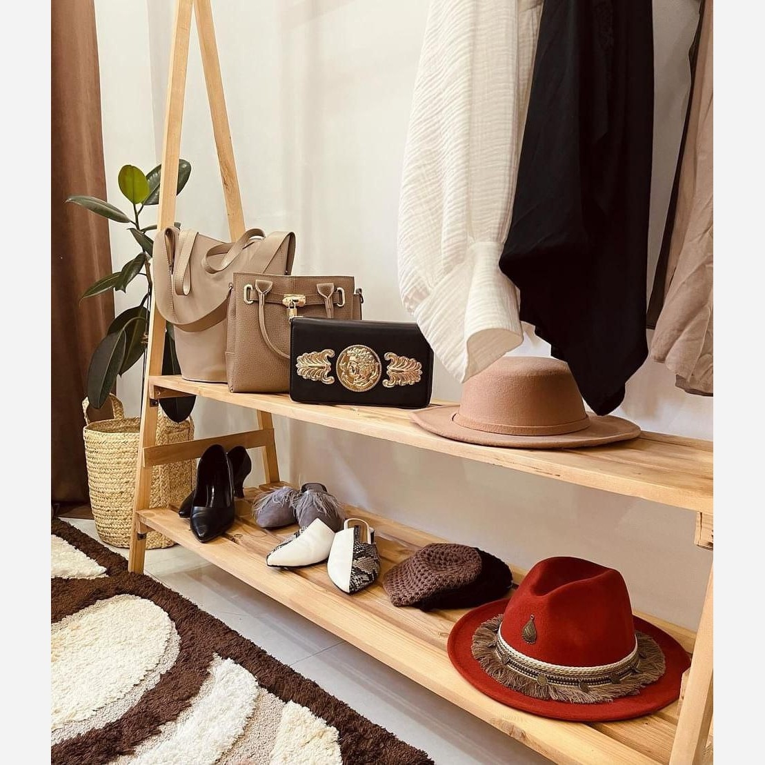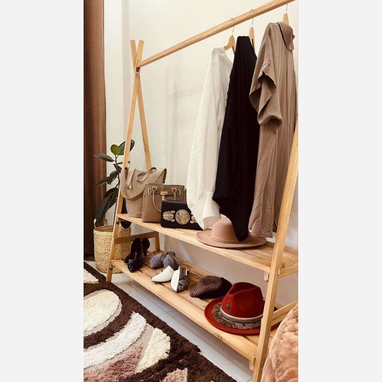رگال چوبی طرح مثلثی دو طبقه پایین مبلمونسرا مدل 229814