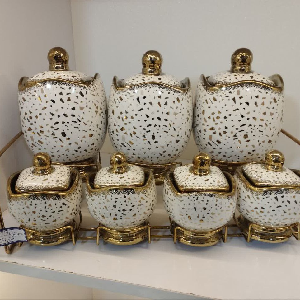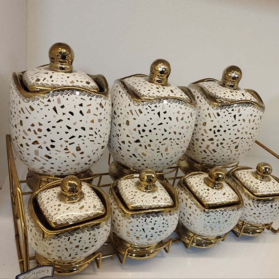 [ پاسماوری آلن طرح افرا نسکافه ای ] ✅ بہ همراہ استند فلز آلن ☆ 3 عدد بانڪہ بزرگ ☆ 4 عدد بانڪ ڪوچیڪ ☆ جنس چینی درجہ یڪ ☆ نقوش آبکاری طلاییضد خش pvd شده براق ☆ دارای استند فلز آبڪارے شدہ ضد خش و ضد زنگ ☆ کار صادراتی بسیار شکلی ☆ برند ساوارز ☆ دارای کارتن کاردویی ❌ قبل از سفارش حتما استعلام موجودی بگیرید ❌
