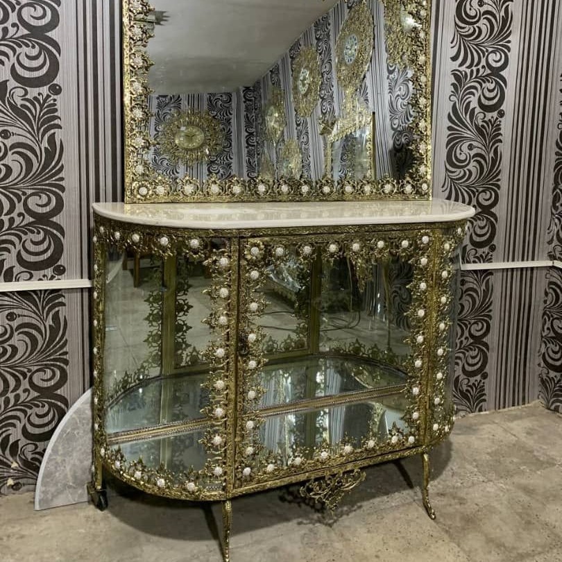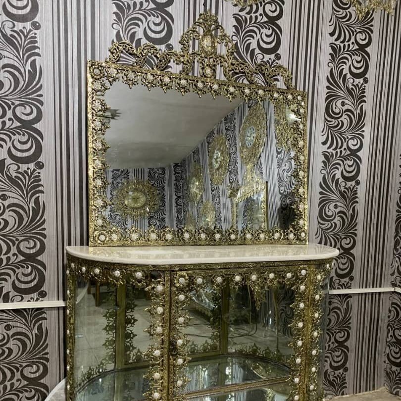 آینه کنسول برنزی سایز 120 نگین سربی تمام آفتاب مبلمونسرا مدل 220490