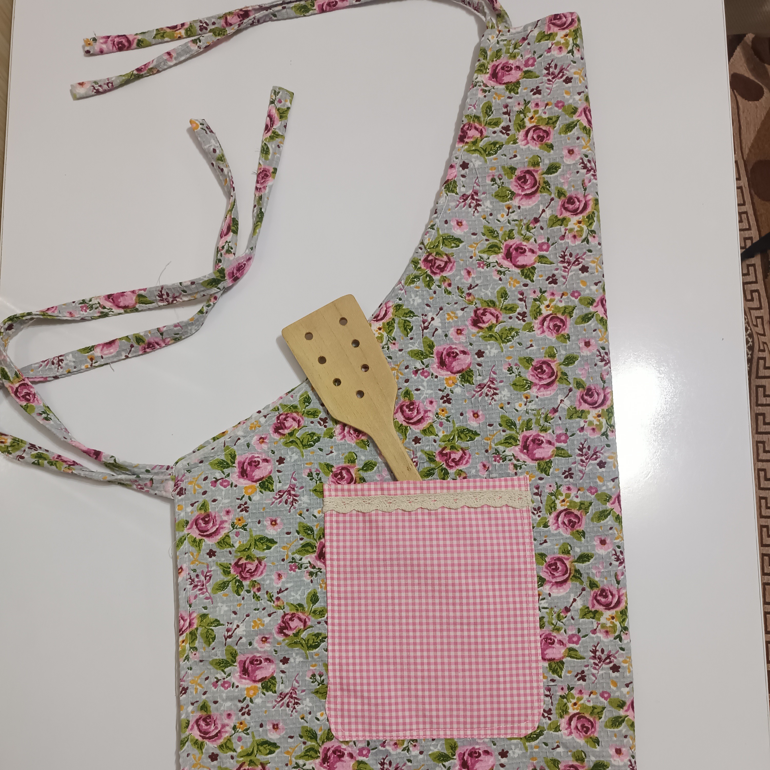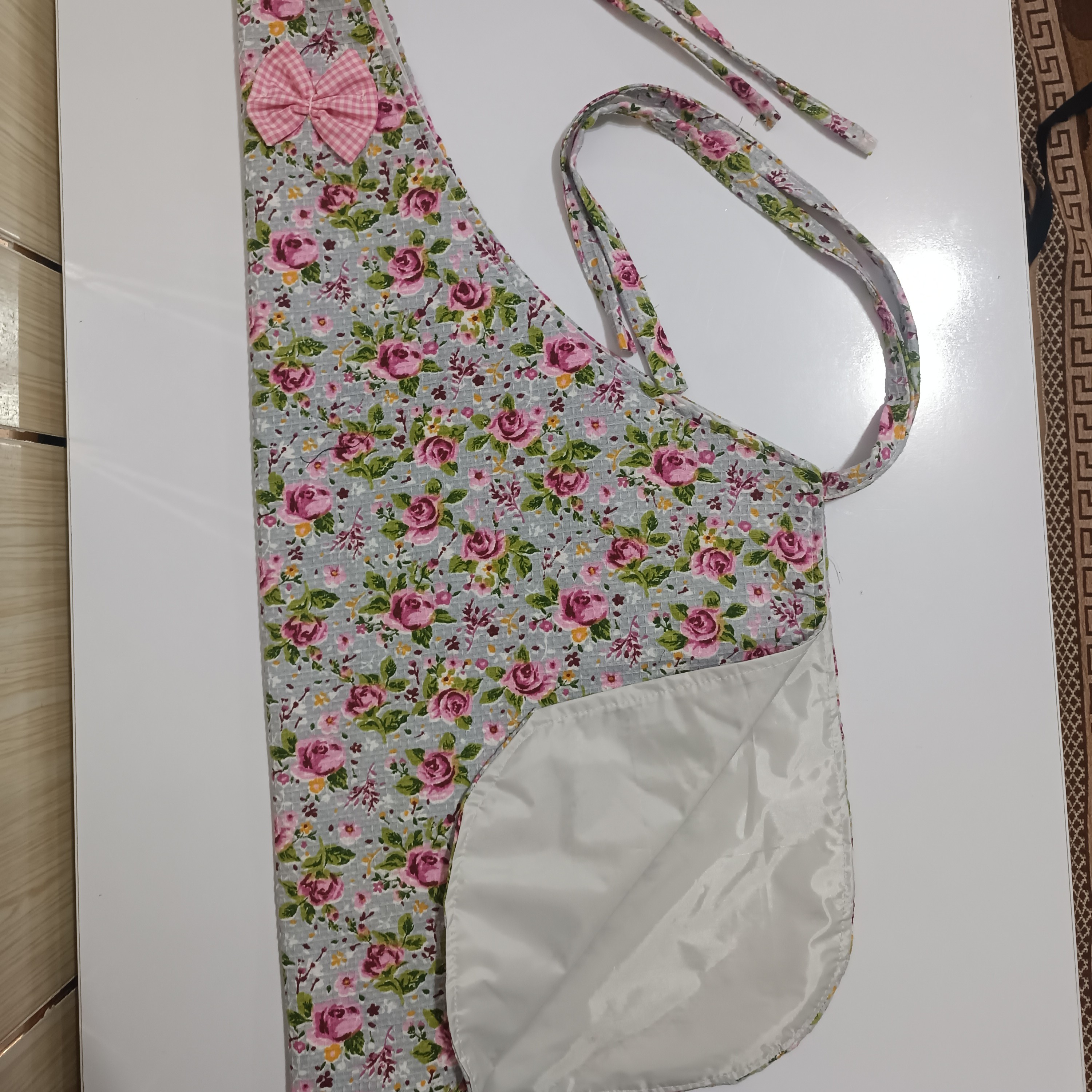 اگه برای استفاده روزمره دنبال یه پیشبند سبک هستی که دست و پا گیر هم نباشه این مدل مناسب شماست عکس اخر جنس کار از نزدیک پشت کار برزنت مخصوص استفاده شده داخل جیب مشما کار شده که اگه گوشی خواستی بذاری خیس نشه بند گردنی گره زدنی که اندازه اون دست خودتون باشه ابعاد کار 70در70هست